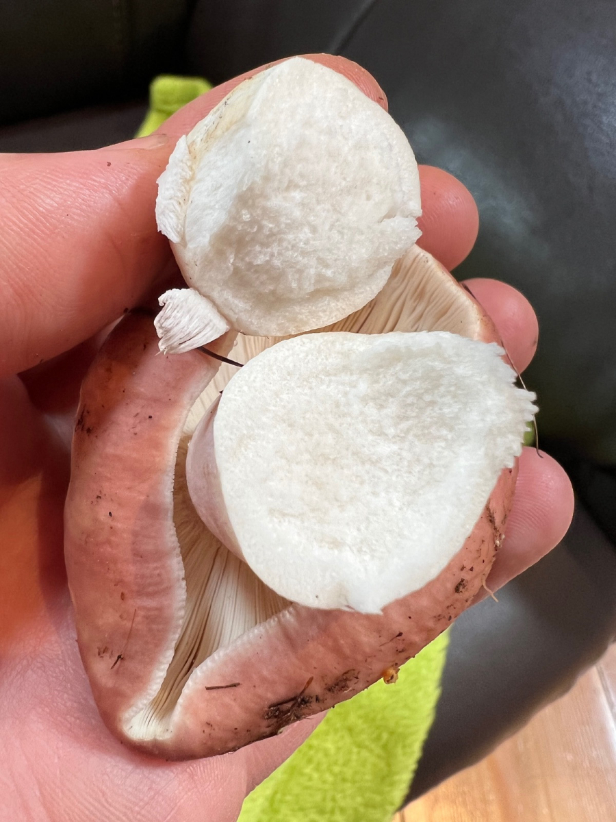 Der Stiel ist querbrüchig, mich verwundert nur diese “faser” ganz am Rand wie auf dem Bild zu sehen. Ist das normal bei Täublingen?