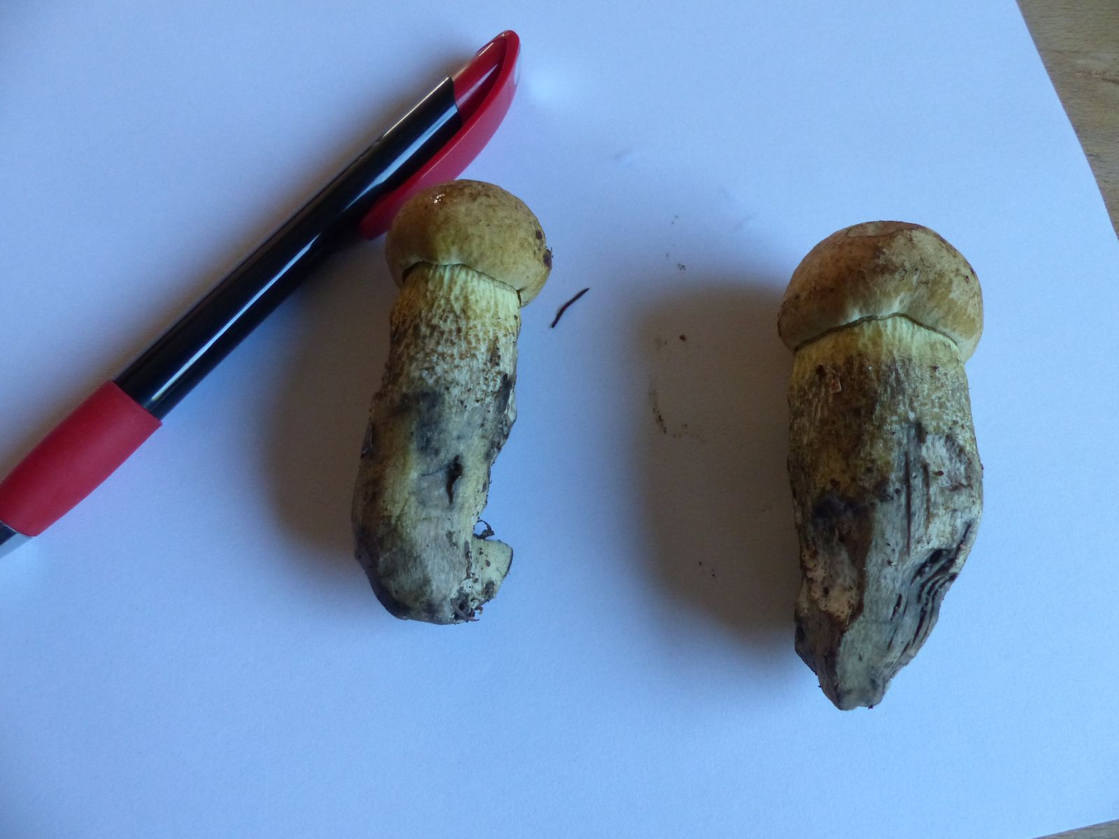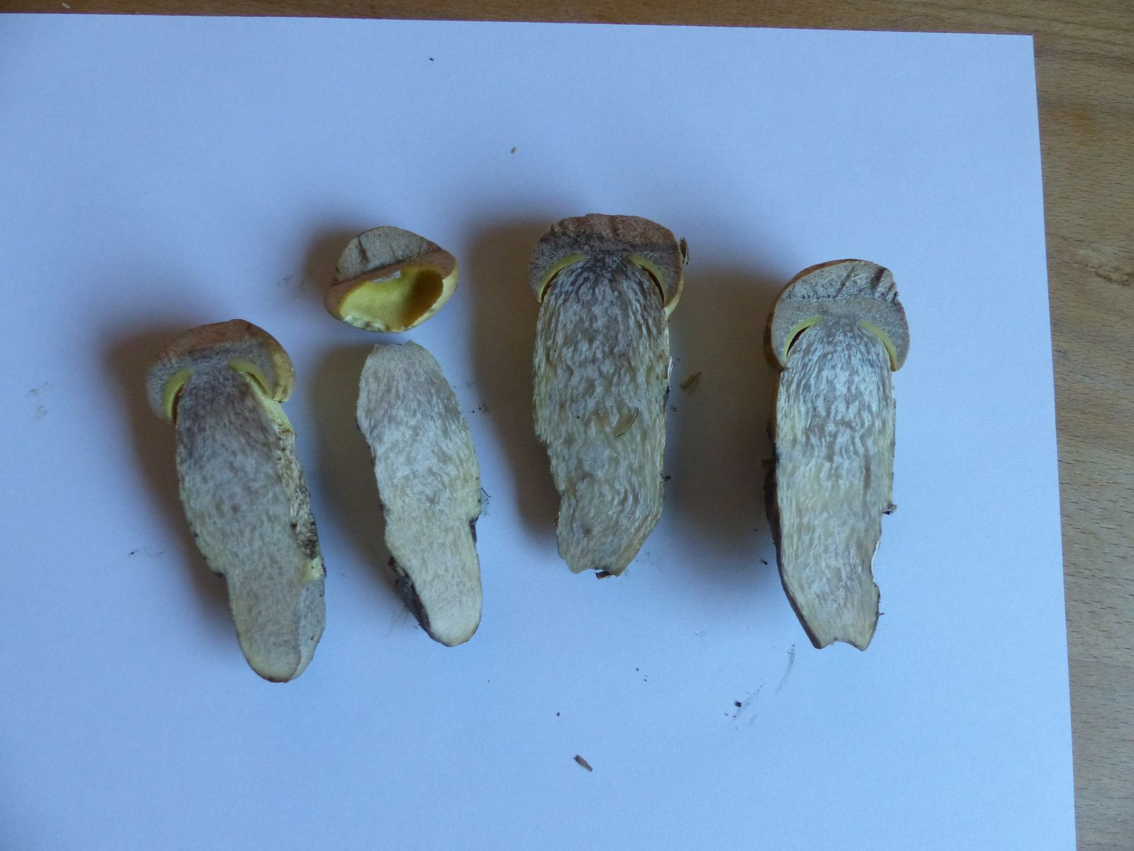 Die haben mich vom Habitus her an junge Rotkappen erinnert. Kann das ein Raufuß sein? Vielleicht sogar der gelbporige? Der müsste sich dann aber eher rosa verfärben, das war bei meinen Exemplaren nur mit sehr viel Phantasie zu erahnen.