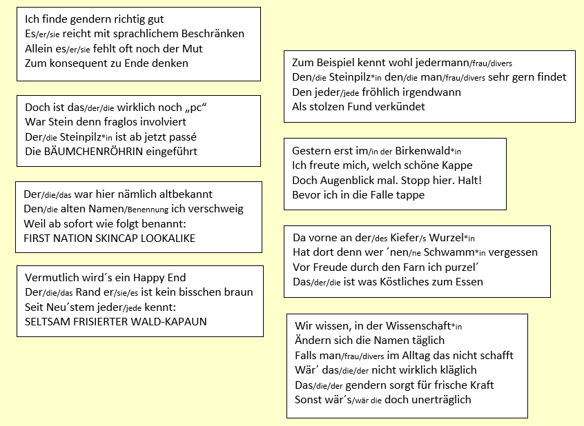 Es geht darum der wenig beachteten Sparte der Poesie, den Pilzgedichten, die verdiente Geltung zu verschaffen.