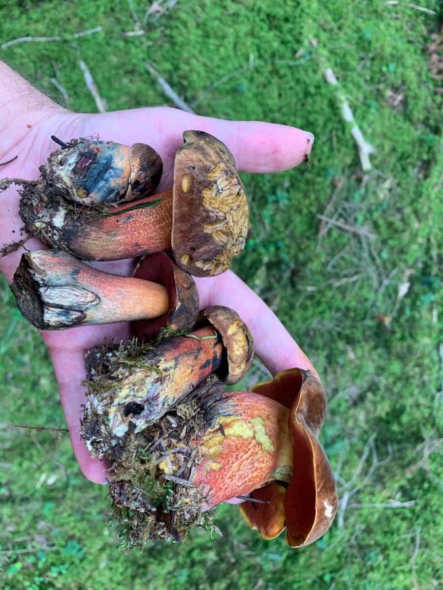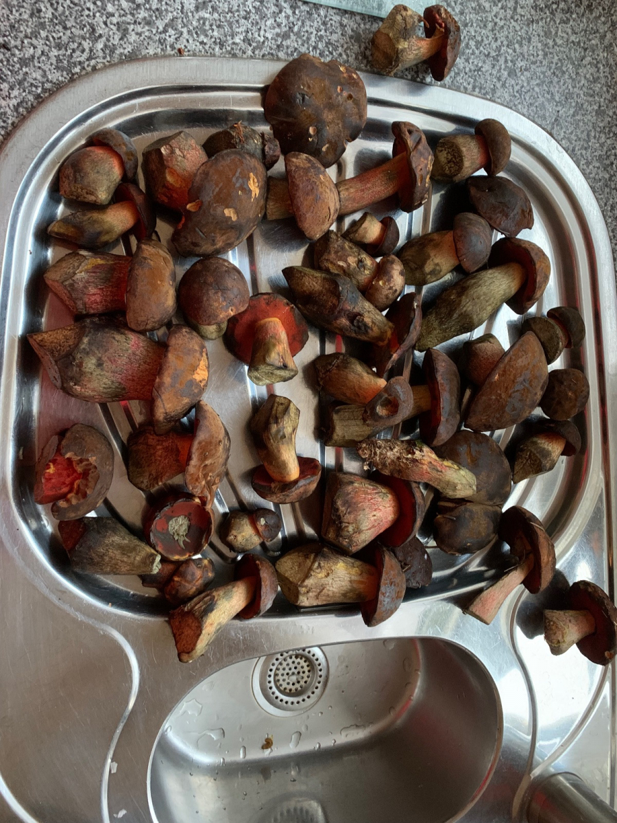 Das hat heute dem Herz des Pilzfreundes richtig gut getan nach all der Trockenheit, auch wenn ich sagen muss, dass bei Täublingen und Milchlingen (besonders Lachsreizkern, die gabs da letztes Jahr in Hundertscharen) und auch Leistlingen (letztes Jahr Trompetenpfifferlinge überall) komplett tote Hose herrscht, vielleicht kommen da aber noch ein paar.