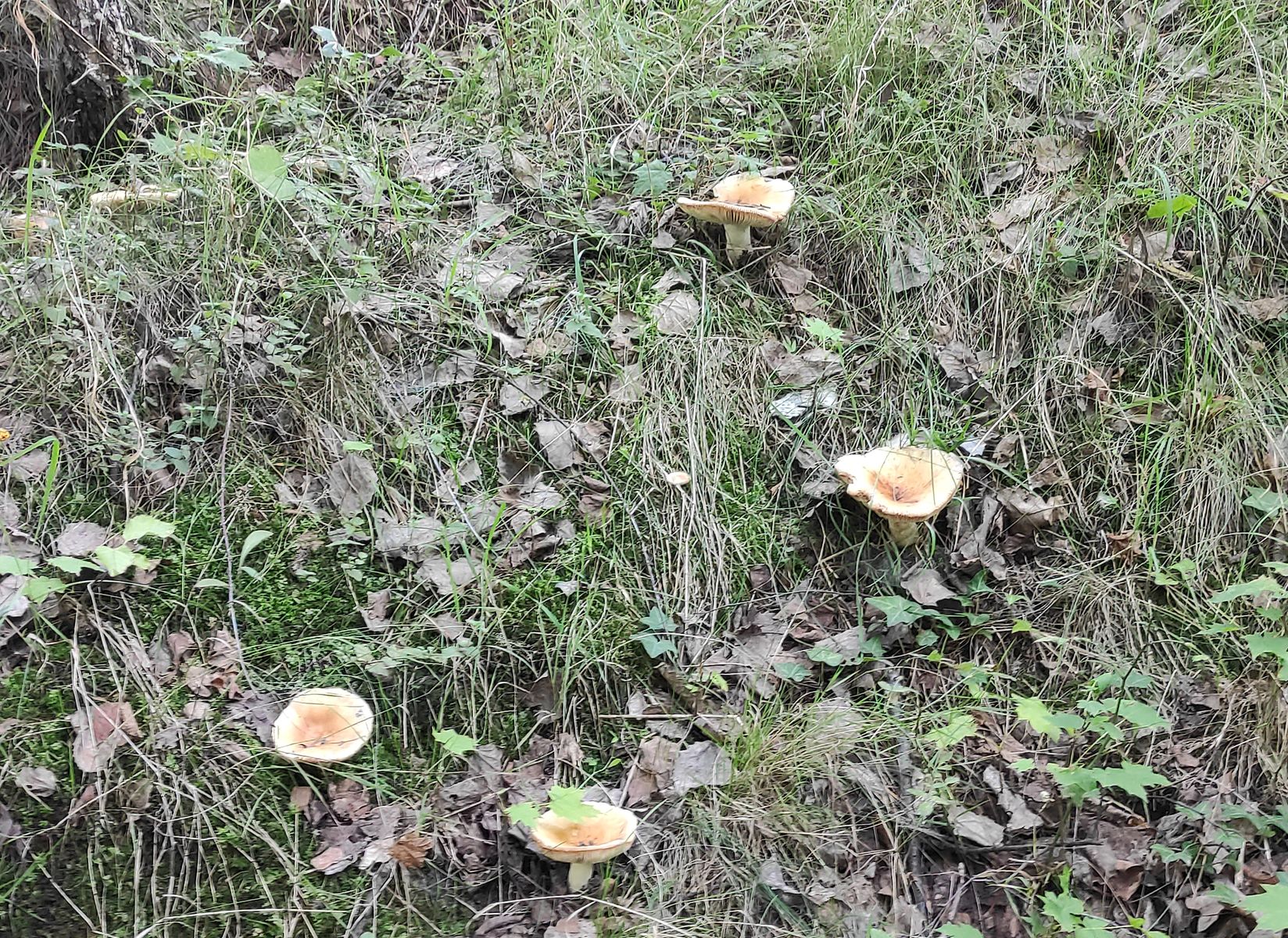 Nummer 1 hat Hasel, Birke, Pappel/Espe als Begleiter im Angebot. Die stehen in großen Mengen und ordentlichen Größen hier rum. Gehören zu den Stinktäublingen, stinken aber gar nicht so sehr. Unangeschnitten haben die einen leicht süßlichen Geruch mit Zitrusnote. Erst nach dem Anschnitt riechen sie unangenehm. Meine Vermutung wäre trotzdem Russula foetens. Sind ordentlich schleimig jung, Lamellen bräunen.
