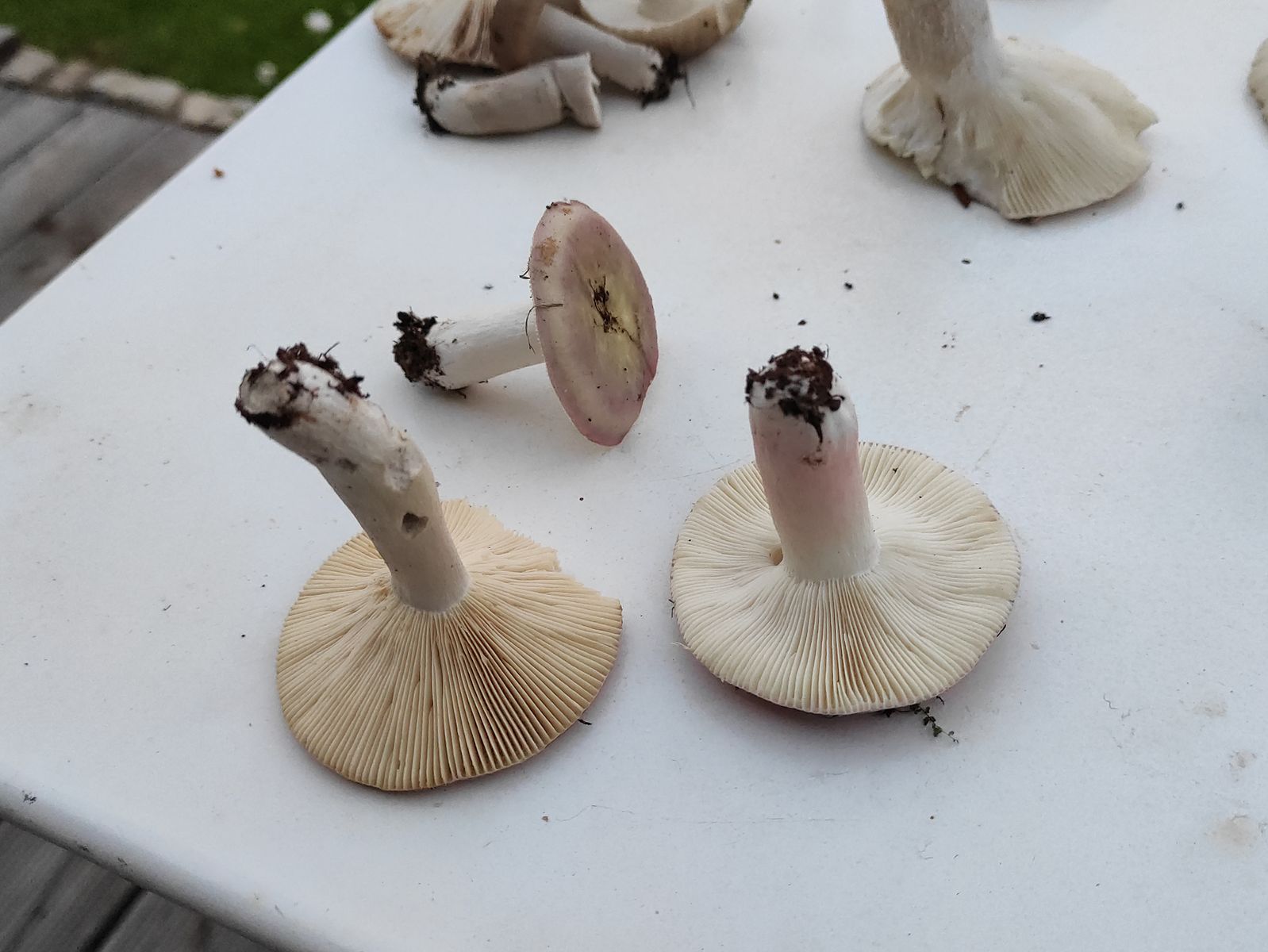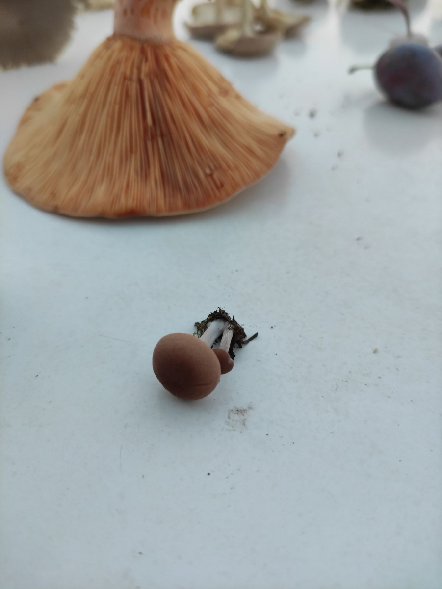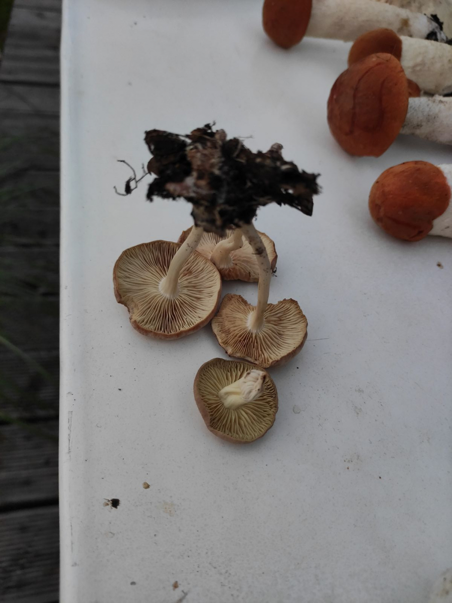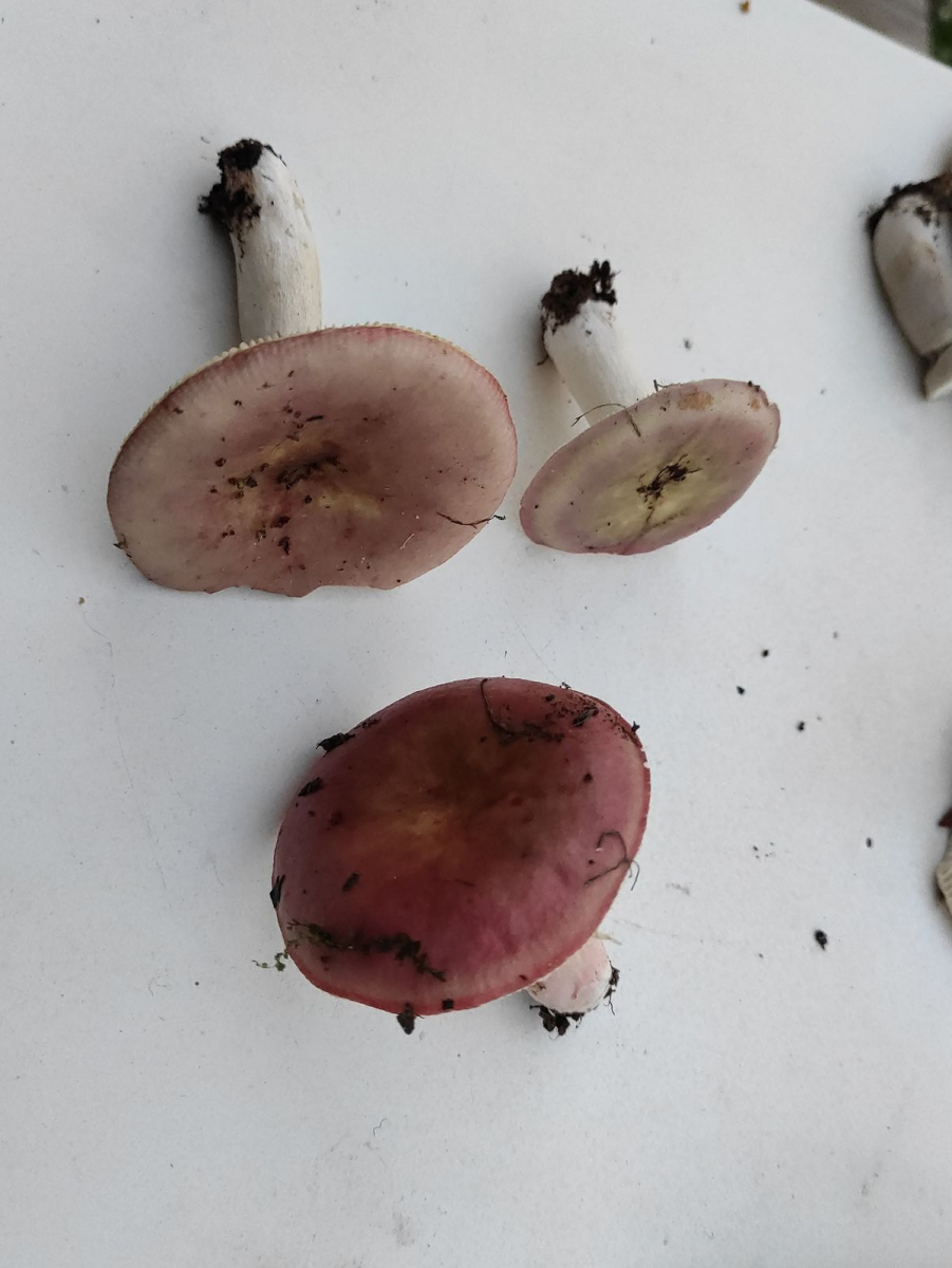 Nummer 2 ist erträglich scharf, neben Hasel, Birke, Pappel/Espe käme noch eine Eiche dazu. Stiel rötlich überhaucht. Ich dachte kurz an Russula fragilis aber der hat glaube ich keinen rötlich überhauchten Stiel. Und die Lamellen bei dem einen Exemplar sehen arg gelblich aus, falls ich da nicht aus Versehen eine andere Art eingepackt habe. Sporenabwurf mache ich über Nacht.