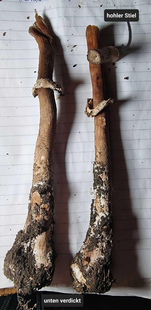 Die fruchtkörper sind ja auch bereits stark verwest, da sind solche merkmale wie Farben, Ringstrukturen und so weiter nicht mehr wirklich zielführend beurteilbar. Vom Gesamteindruck sollten das aber schon (stark zersetzte) Fruchtkörper von Macrolepiota procera agg. gewesen sein.