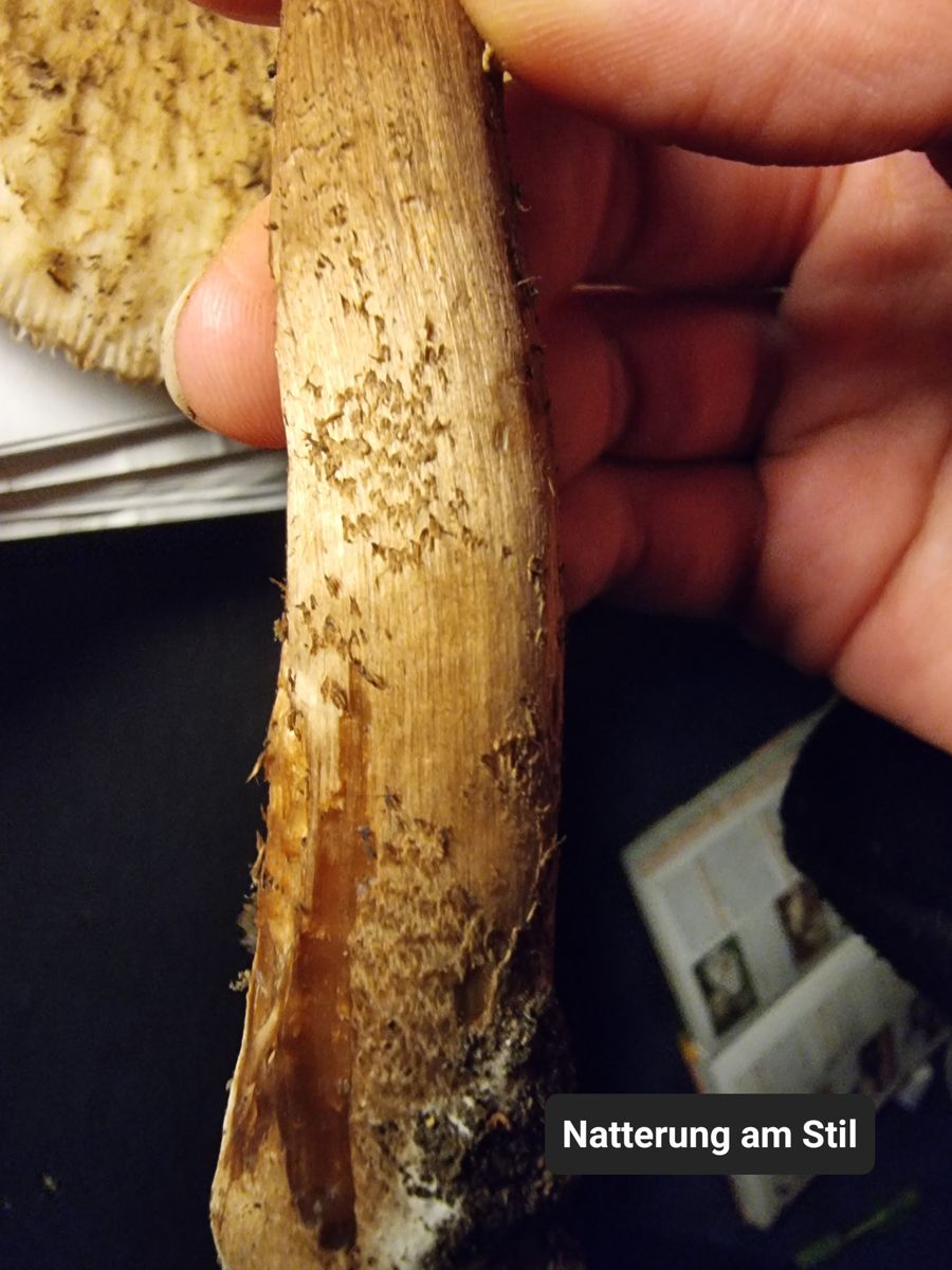 Wenn man die genannten Merkmale und vor allem auch die Stielnatterung berücksichtigt, sollte das ja auch passen. So wie ich das sehe, ist das Problem hierbei ja eher, dass die Fruchtkörper, wie Pablo ja schon geschrieben hat, einfach schon zu alt sind und dadurch eben auch einige Merkmale nicht mehr so ausgeprägt zu sehen sind. Zudem steht im Buch ja auch: "Überständige Exemplare sollte man allerdings besser meiden. Es sind die besonders riesigen Exemplare, die bereits derbe, wollig weiche Hüte haben." Für mich sehen die oben gezeigten Pilze jedenfalls deutlich überständig aus.