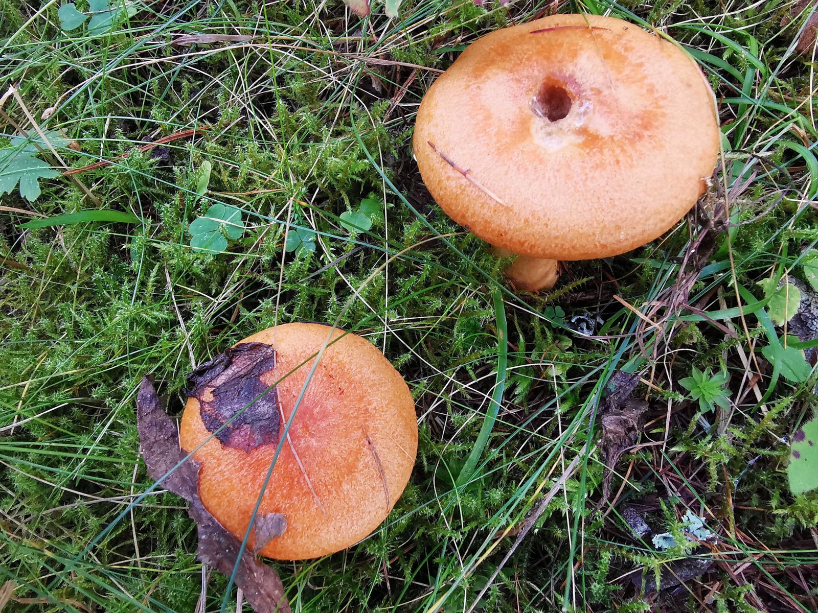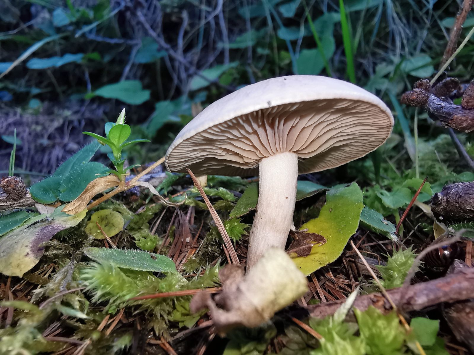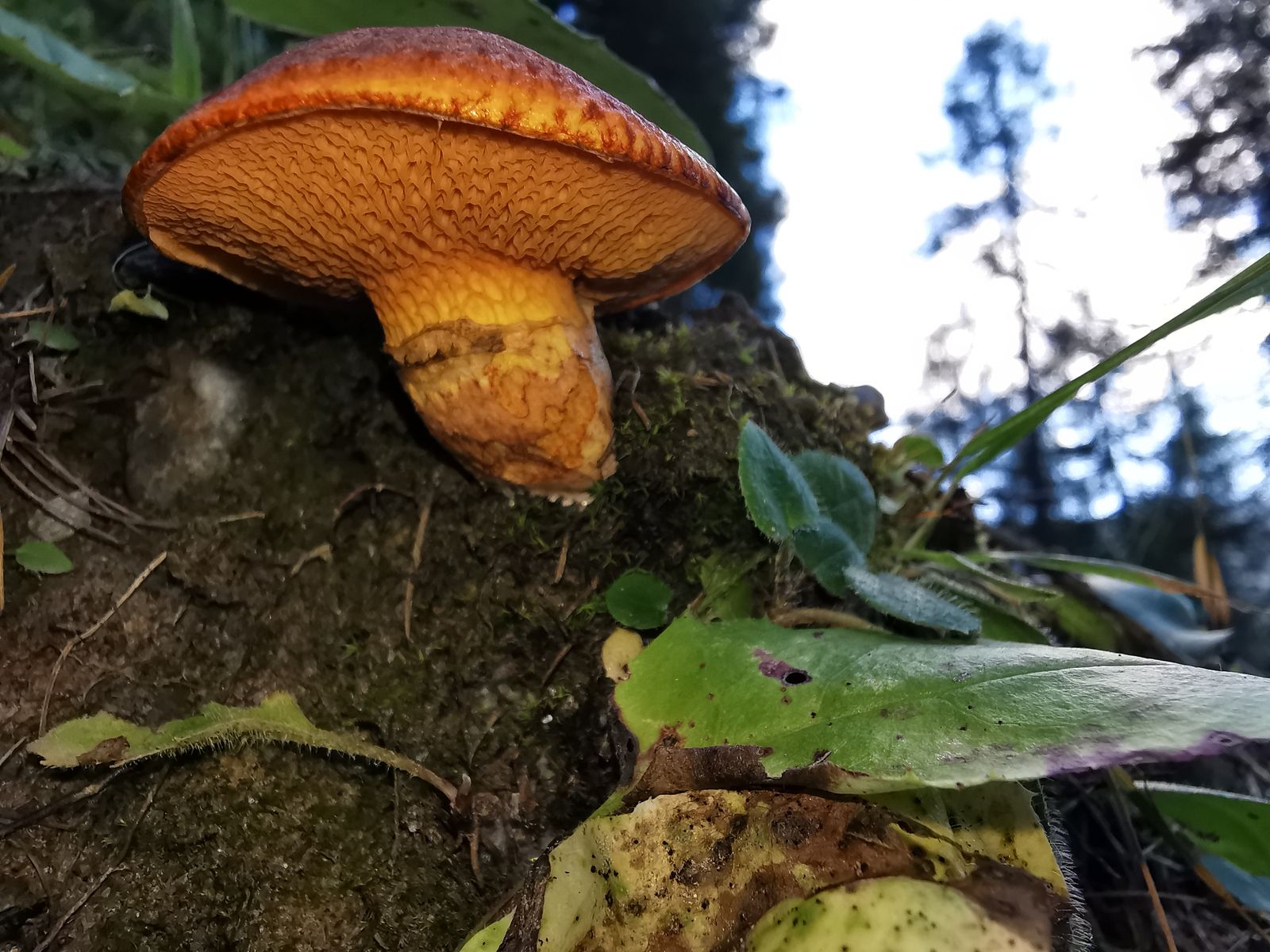 Zum Schluss, noch ein Pilz, der schon ziemlich angeknabbert wurde. Meine Vermutung geht hier in Richtung Schmierlinge (vielleicht Gomphidius maculatus).