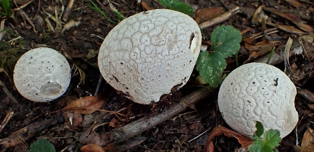 Zuerst einige Hasenstäublinge (Lycoperdon utriforme), die äußerst gesellig wuchsen und für die Art recht klein blieben.