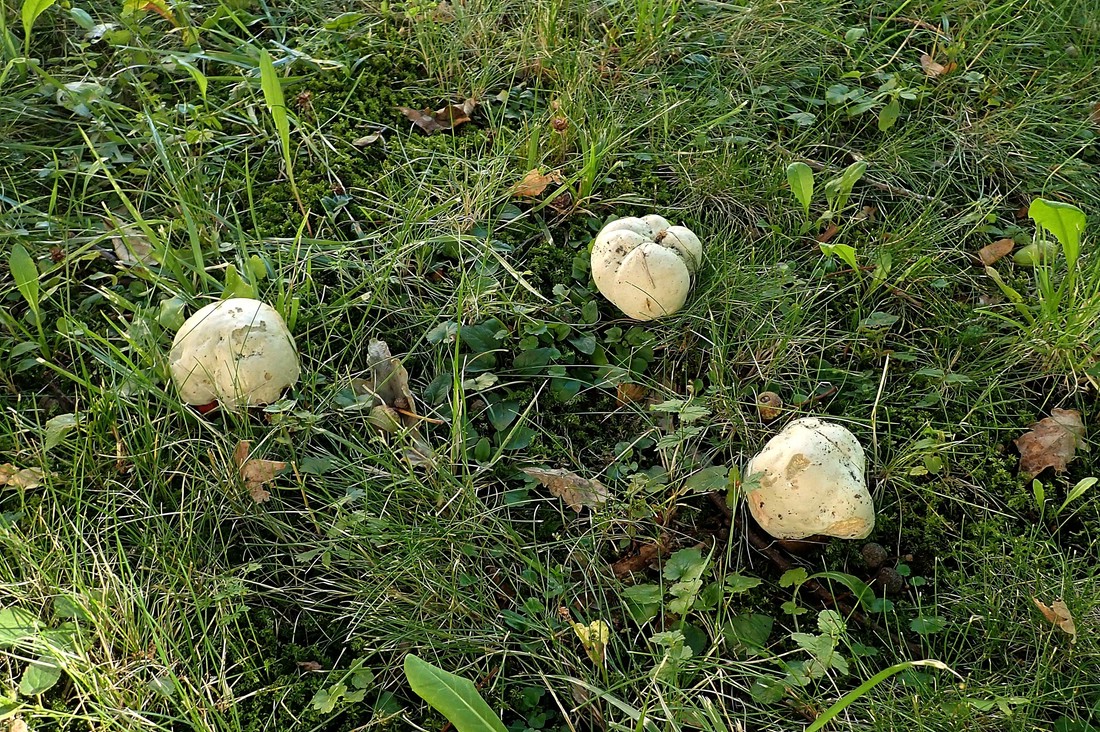 Zuerst einige Hasenstäublinge (Lycoperdon utriforme), die äußerst gesellig wuchsen und für die Art recht klein blieben.