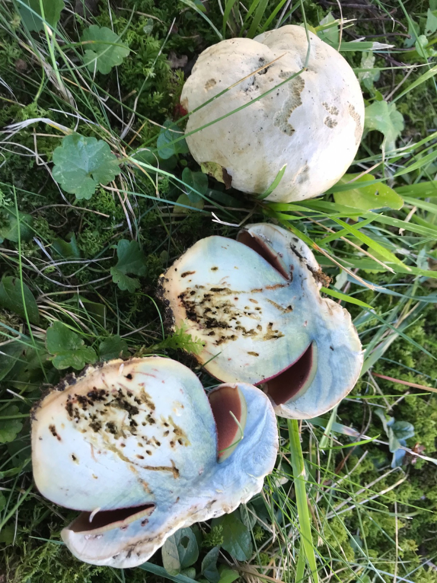 Dominiert wurden die Parkrasen von Hunderten Wurzelnden Bitterröhrlingen, liebevoll auch WuBis genannt (Caloboletus radicans).
