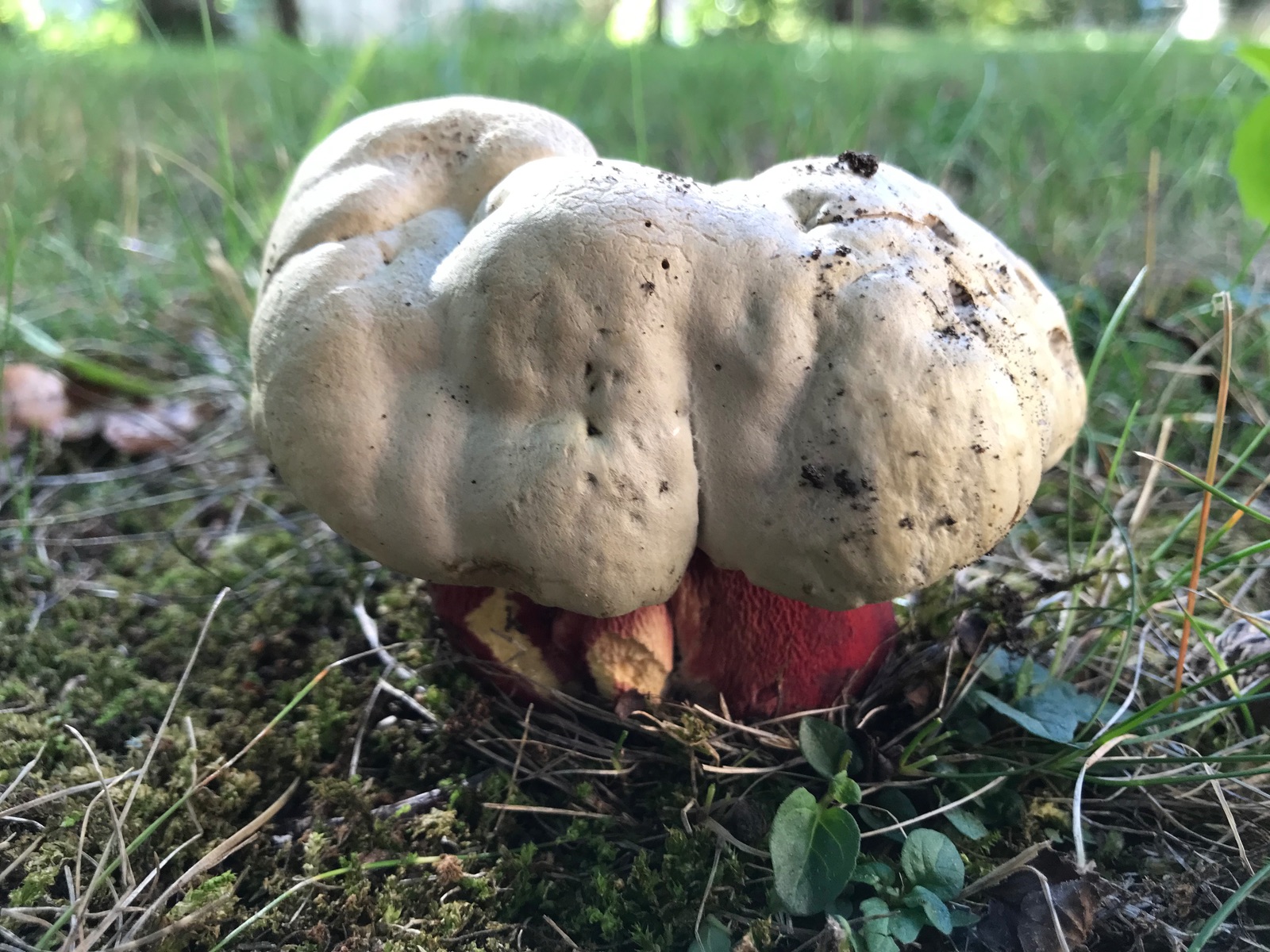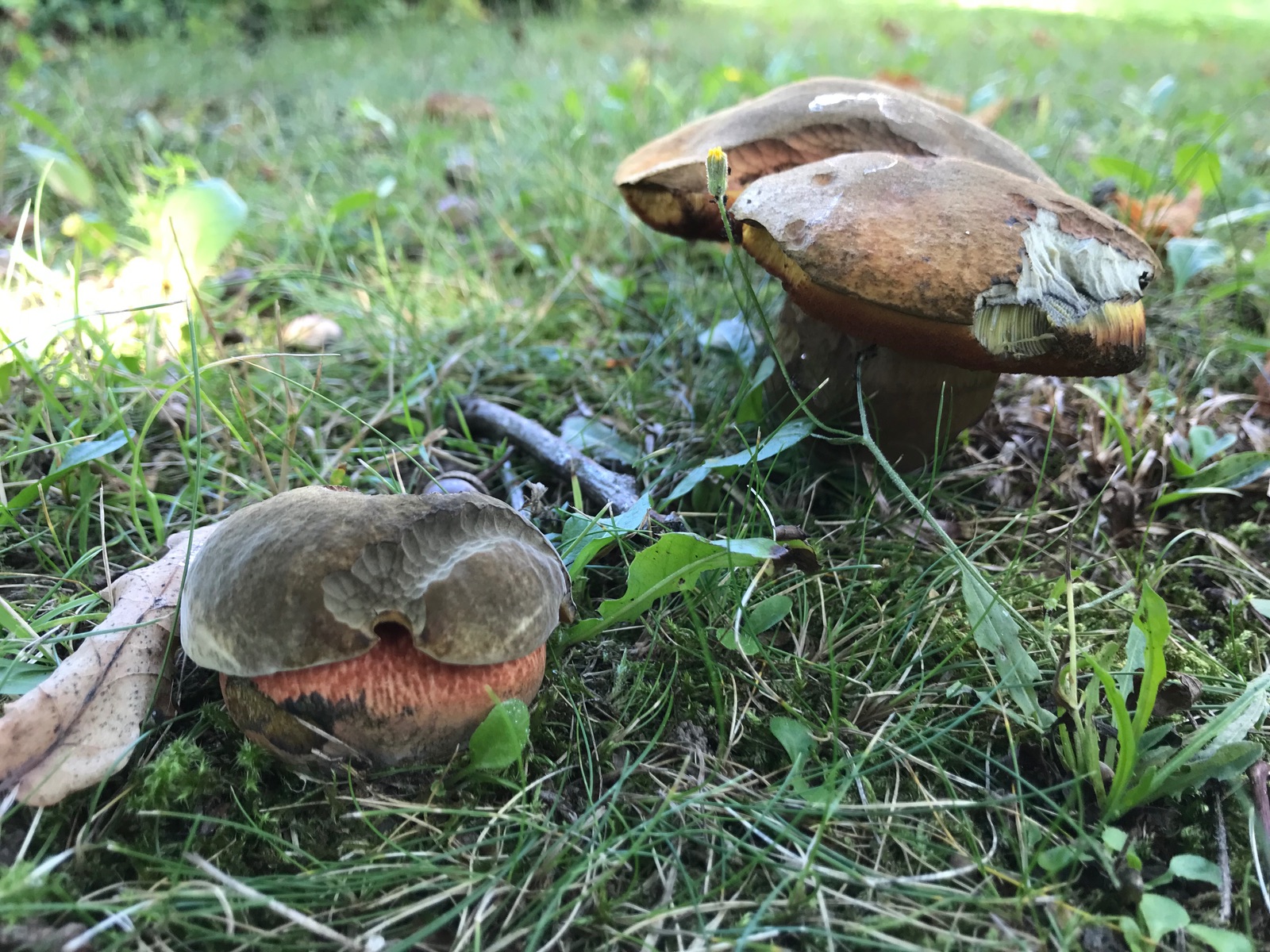 Dominiert wurden die Parkrasen von Hunderten Wurzelnden Bitterröhrlingen, liebevoll auch WuBis genannt (Caloboletus radicans).