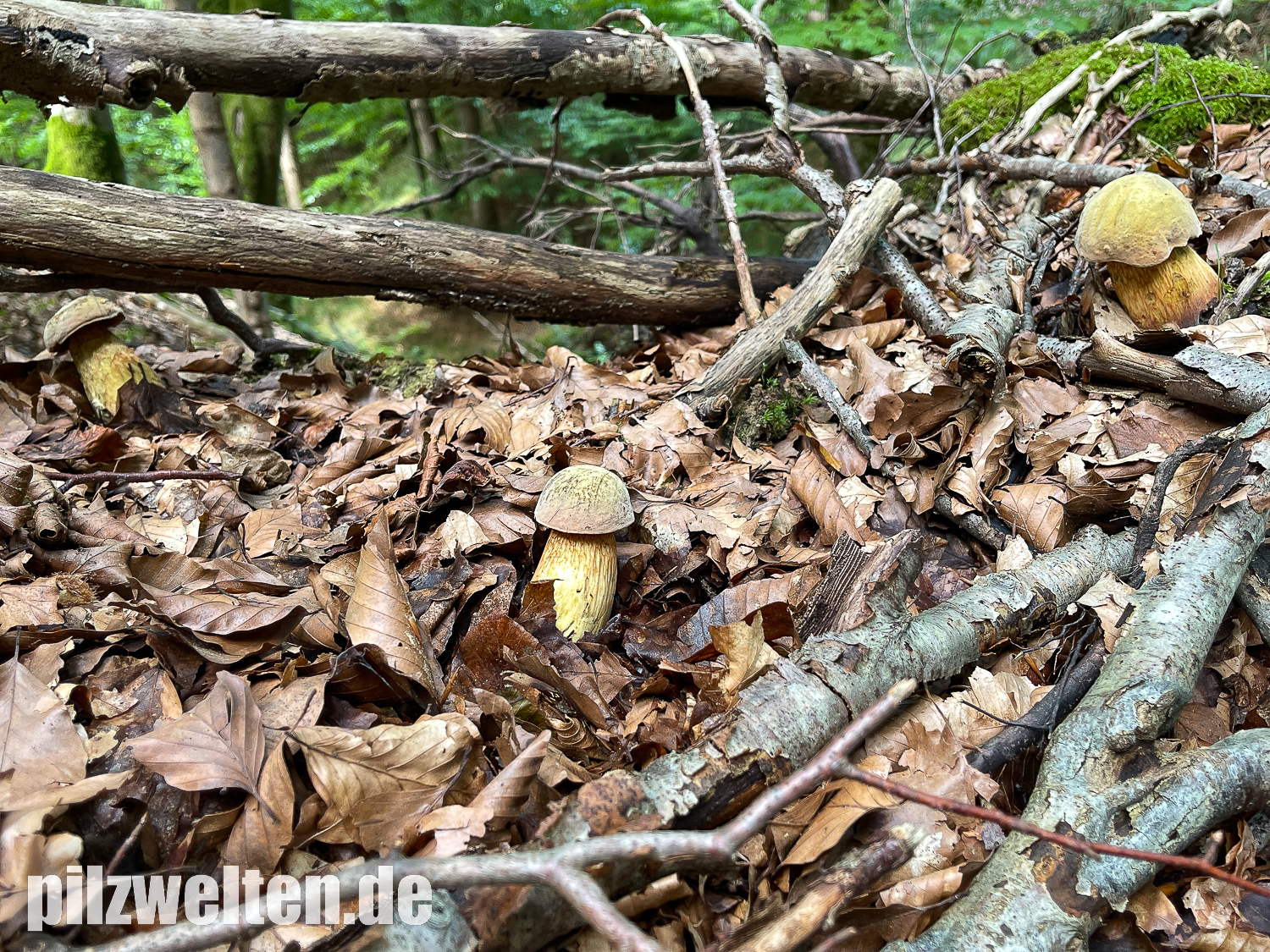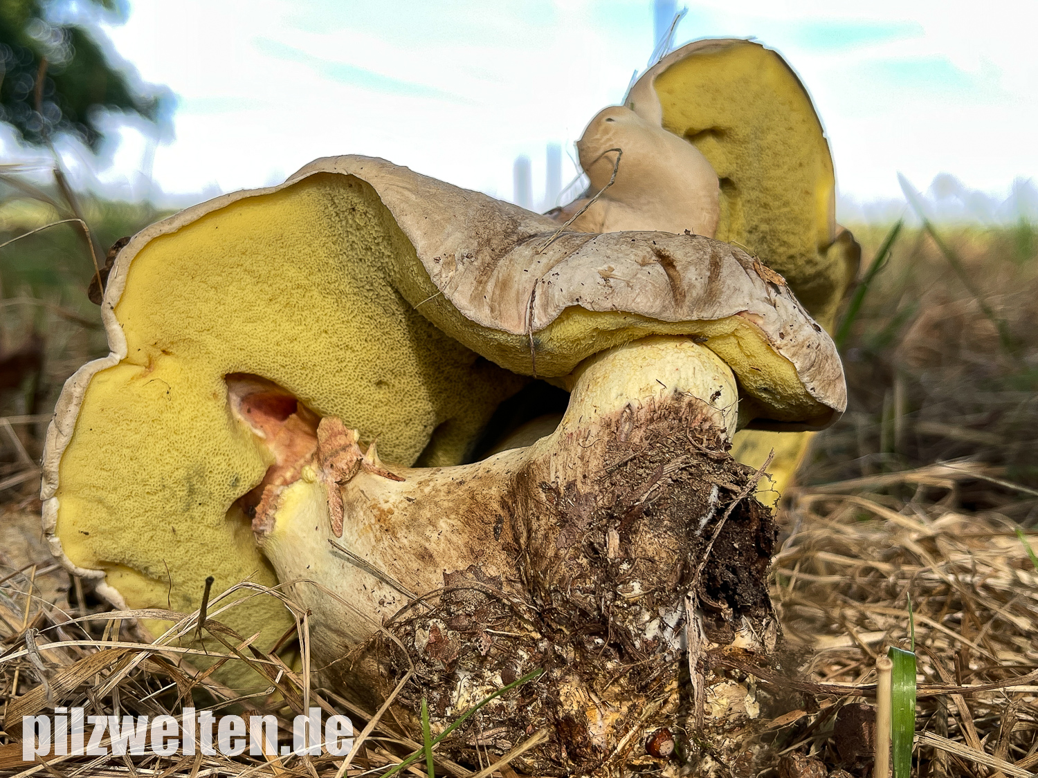 2. Wurzelnder Bitterröhrling, Caloboletus radicans - unzählige FK in allen Alterstufen - gemeinsam mit den "Robinroten" bei der großen Gruppe uralter Eichen am Straßenrand