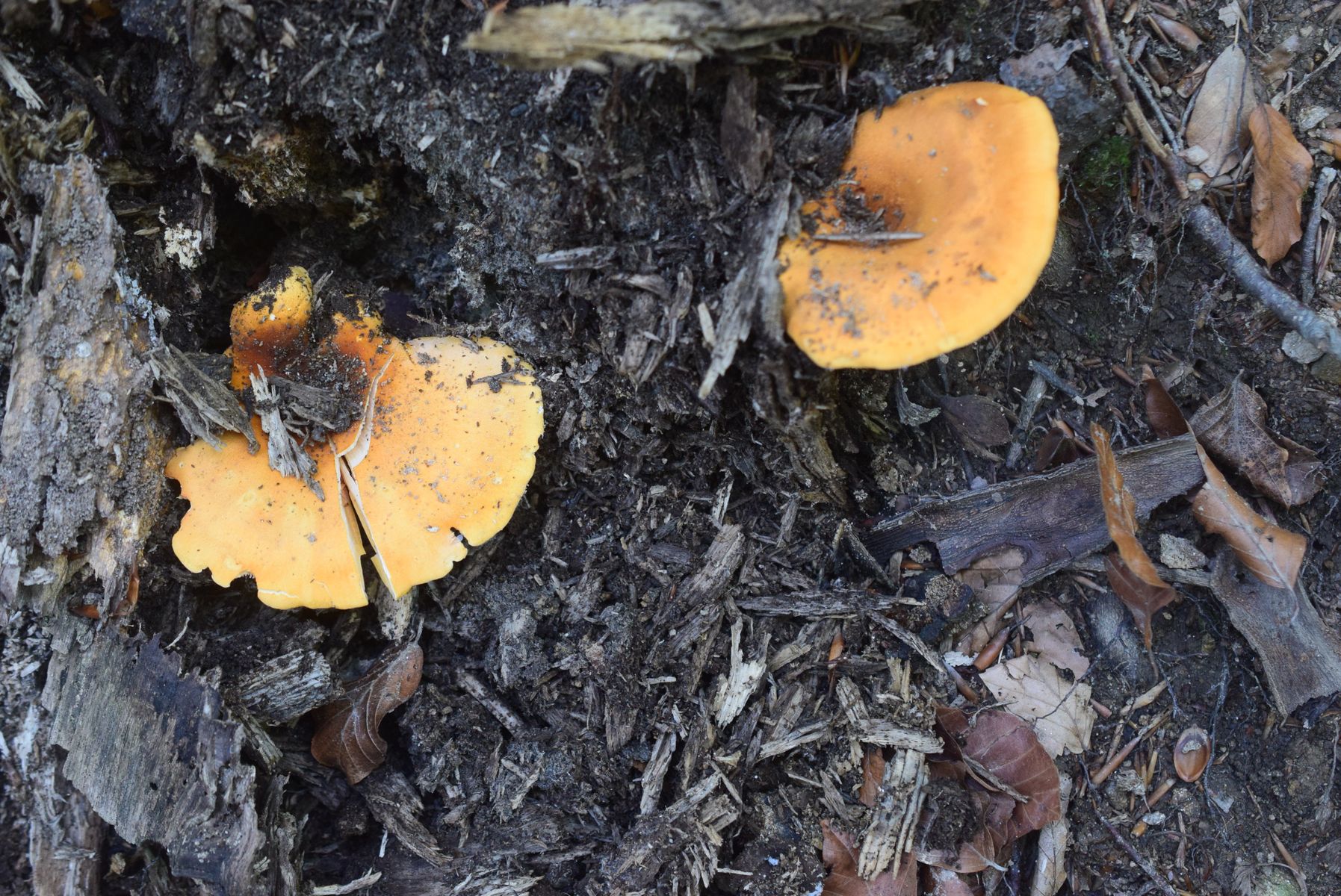 ich hätte die als falsche Pfifferlinge (Hygrophoropsis aurantiaca) angesprochen.