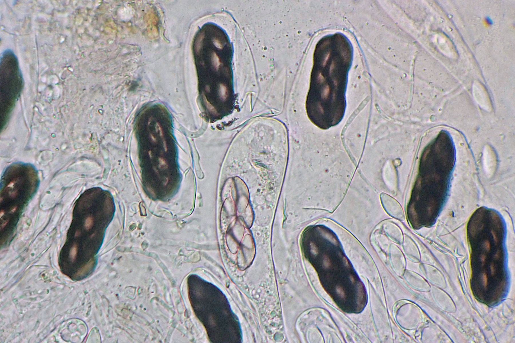 Aber mit der breiten, die Sporen umgebende Gelhülle ist das sicher nicht die ursprünglich vermutete Sordaria goundaensis, sondern die Art sollte in den Formenkreis um Sordaria fimicola gehören.