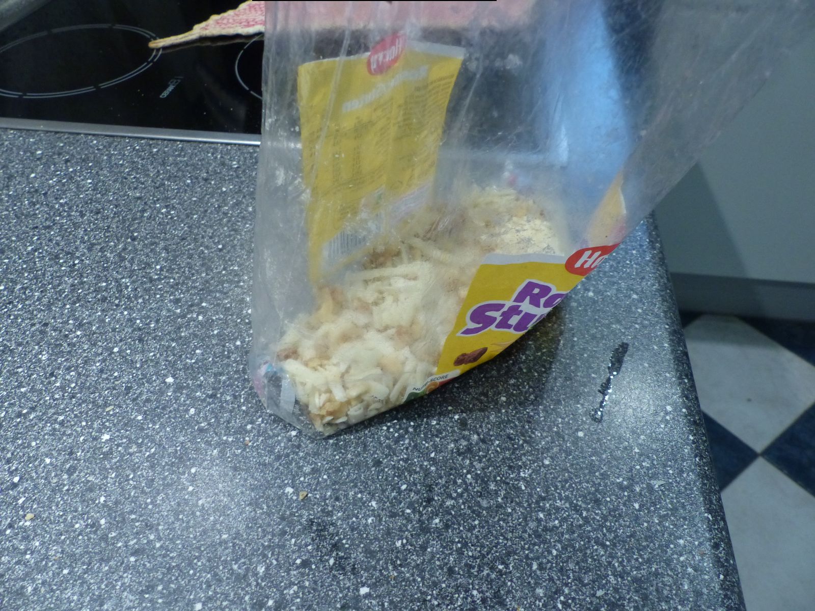 Die nicht bedeckten Pilze zusätzlich mit Olivenöl abdecken, damit die nicht verbrennen. Für 15 Minuten im Ofen bei 190 Grad backen. In einer Tüte Walnüsse hacken und gehobelten Parmesan hinzufügen.