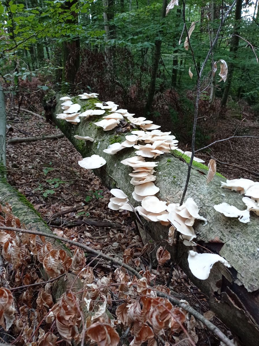 Und heute habe ich viele weiße recht große am liegenden Baumstamm entdeckt. Die waren schon aus 20 Metern zu entdecken.