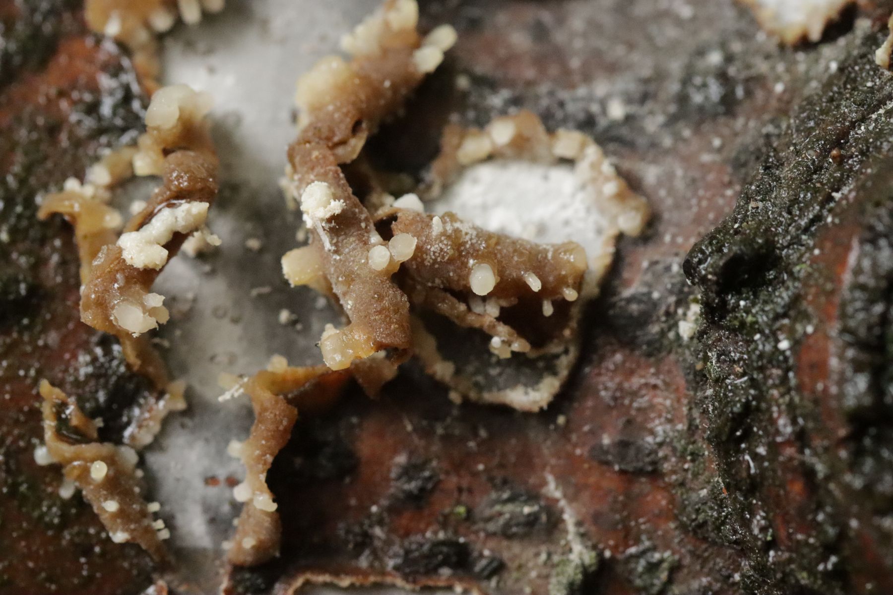 ich habe heute in einer Regenpause einen Spaziergang durch den Duisburger Stadtwald gemacht. Auf einem Buchenast fanden sich seltsame pilzliche Gebilde. Die Rinde des Astes war an etlichen Stellen aufgeplatzt und auf dem Holz war ein weißer Belag, ähnlich einem Rindensprenger. Mikroskopisch waren dort dann aber nur braune Konidienträger zu sehen. An den umstehenden Rindenstücken gab es kleine weiße Knubbel. Diese waren relativ fest und waren mikroskopisch ohne irgendwelche mir bekannt vorkommenden Strukturen. Hat jemand eine Idee, was das sein könnte oder in welche Richtung ich schauen sollte?