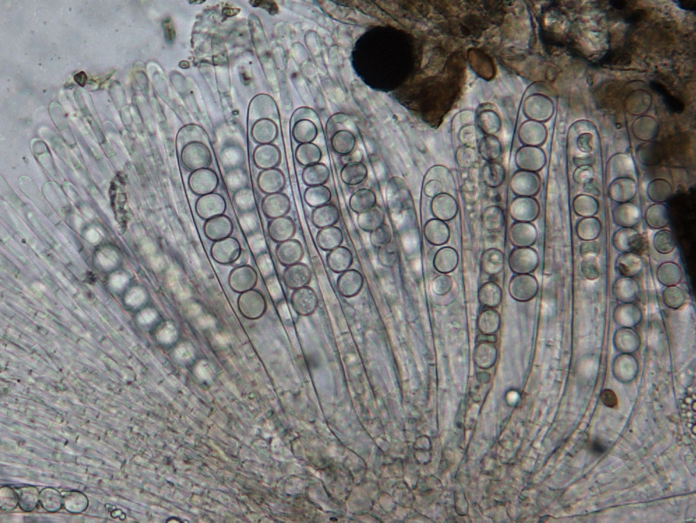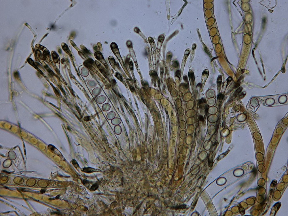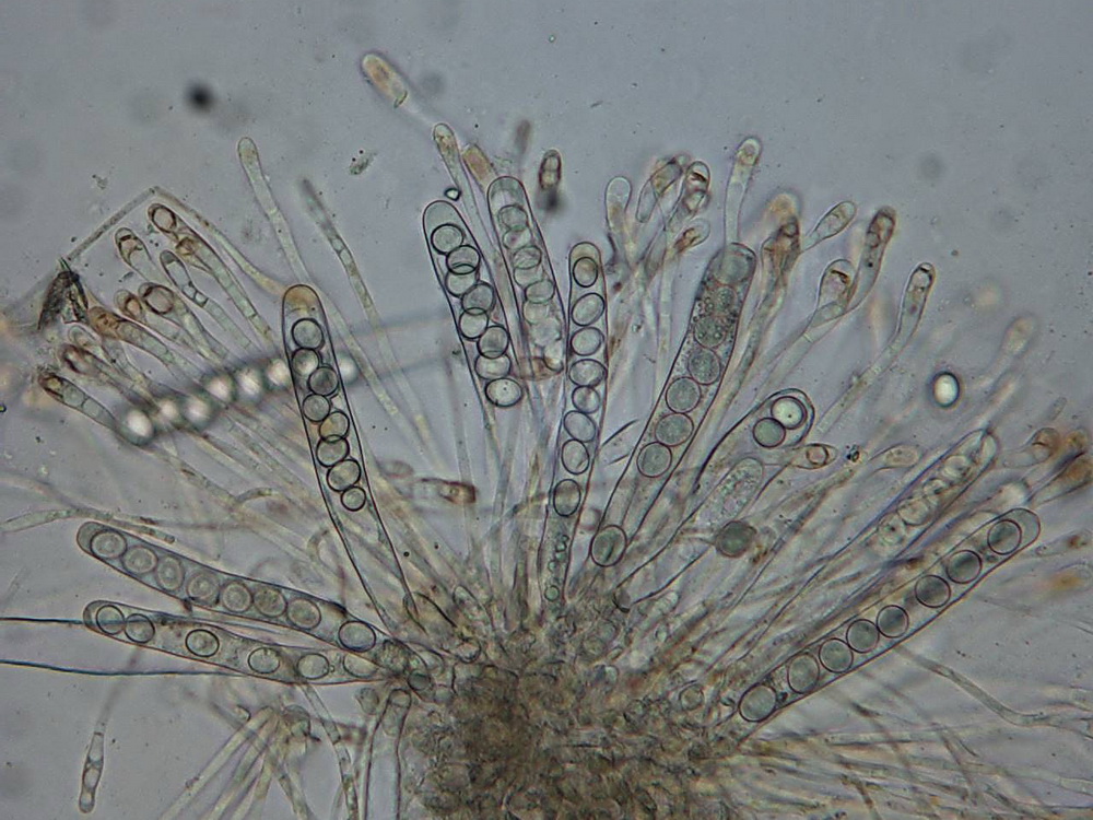 auf Dung von Damwild, Frk. ca. 2,5 mm groß, Basis mit langen Ankerhyphen