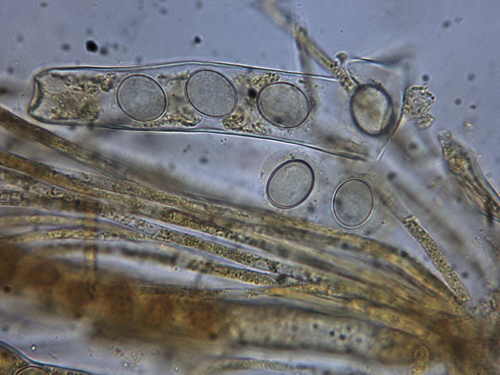 Sporen: 14,1 - 16,6 x 11,6 - 13,2 µm, Sporen: glatt in Wasser