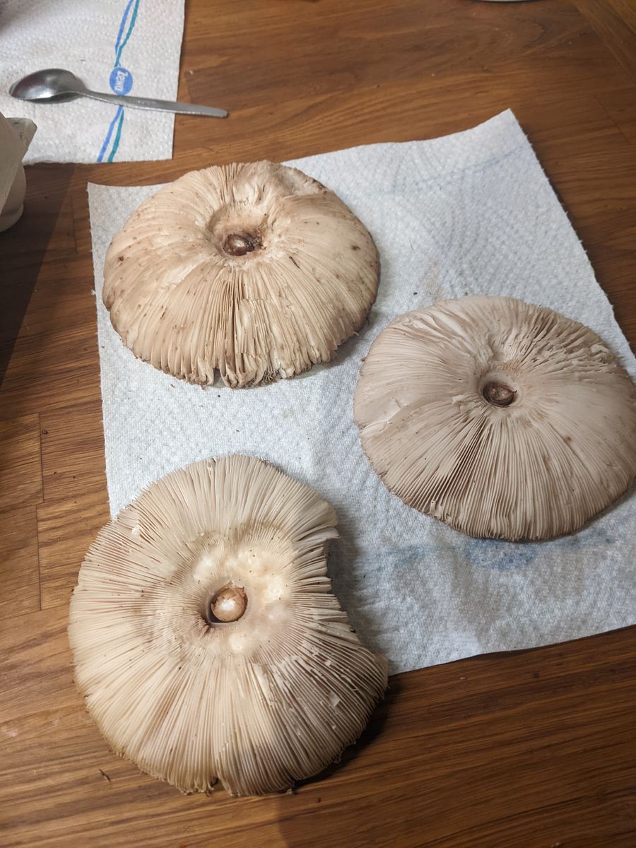 Hallo chrissooo, es dürfte sich schon um Angehörige der Gattung Macrolepiota handeln. Wenn es um Verzehr geht, spielt aber auch das Alter und die Frische der Fruchtkörper eine Rolle. Deine Exemplare haben einen komplett aufgeschirmten Hut, sodass die Hutränder sogar die Hutmitte zu überragen scheinen. Das ist ein Zeichen dafür, dass es sich um sehr reife Exemplare handelt, was Konsequenzen für die Essbarkeit haben könnte (Stichwort unechte Pilzvergiftung).