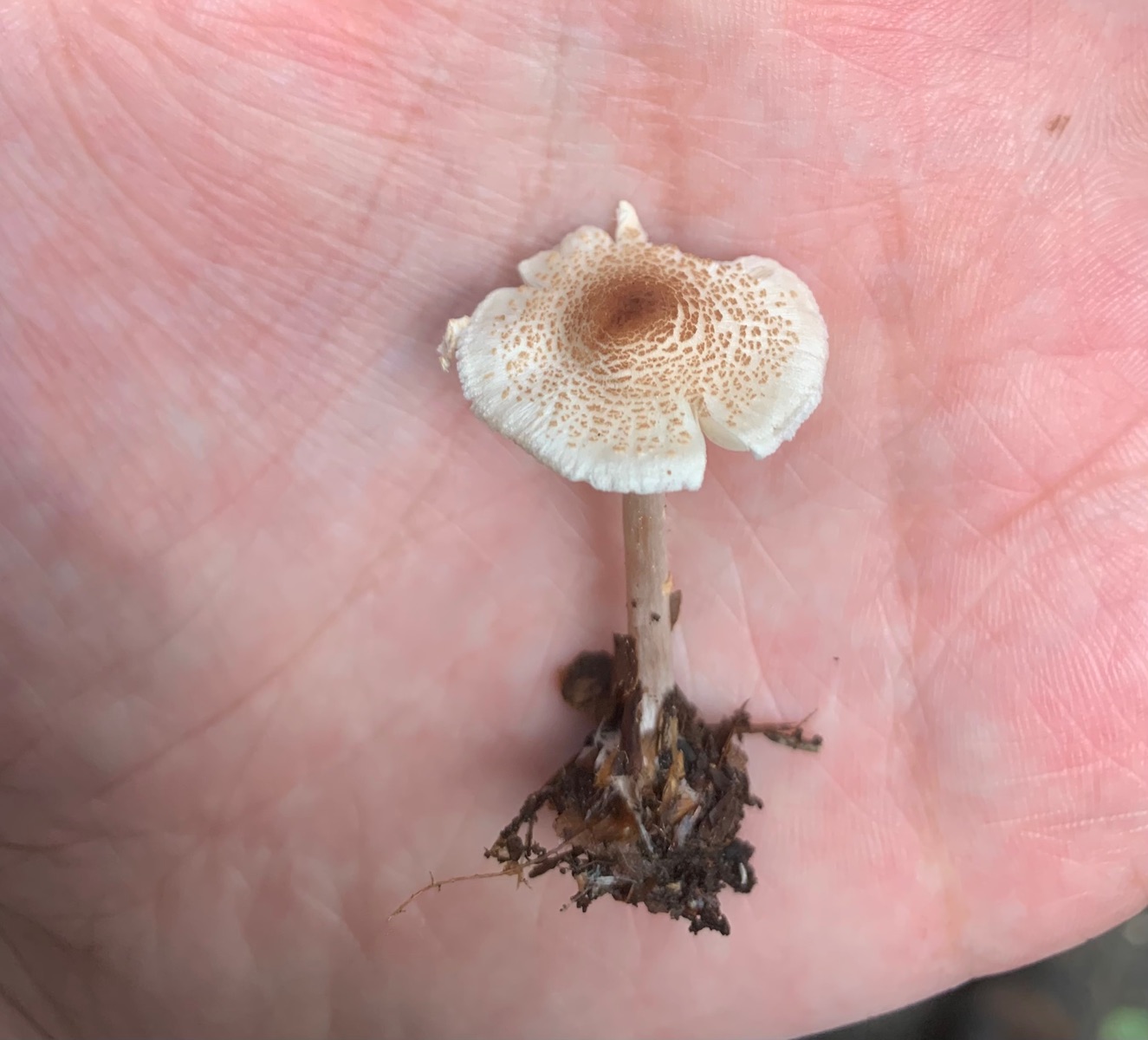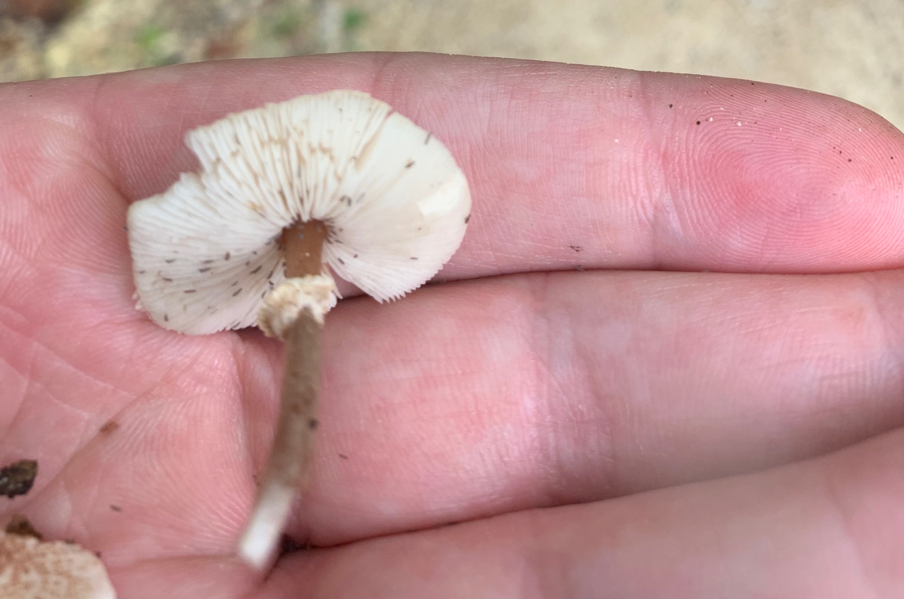 Beide waren nur knapp 2cm groß, ich lasse sie gerade aussporen und kann sie morgen auch unters Mikro packen, weiß jemand worauf ich da achten sollte? Meine Vermutung ist Lepiota pseudolilacea aber sicher bin ich mir echt nicht. Kann mir jemand da helfen?