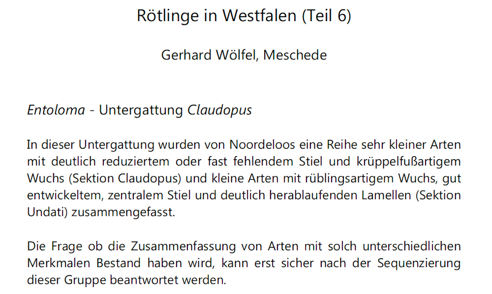 falls sich dieser Fund als Rötling entpuppt – was ja anhand der Sporen leicht festzustellen ist –, so würde er der Untergattung Claudopus angehören, Zitat aus nachfolgendem Link, in dem die Arten der beiden Untergattungen kurz und mit Foto beschrieben sind: