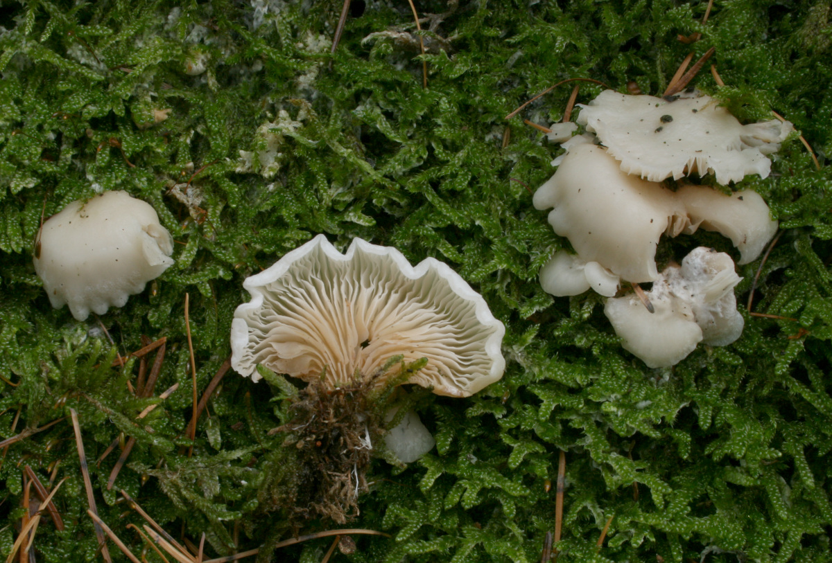 Es kämen dann noch weitere Arten, nicht nur E. byssisedum, in Frage. Solche weißen, kleinen "Muschelinge" hatte ich bisher 2x auf Moos, sie stellten sich als E. depluens heraus. Allerdings waren "meine Muschel-Rötlinge" nicht so rein weiß, sondern leicht creme/hellgrau.