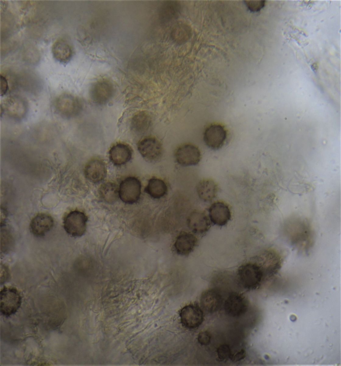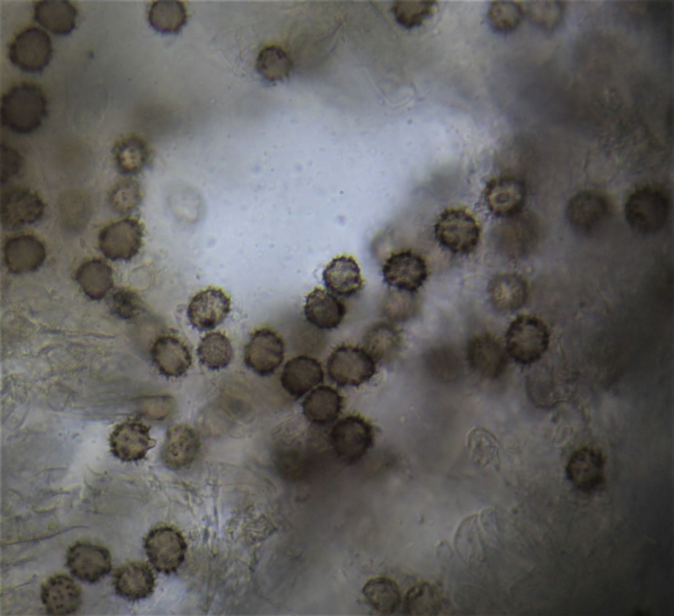 Die Sporen sind breitelliptisch bis fast rund und messen 7.3 - 8.5 (8.8) × 6.2 - 7.7 (8.2) µm. Der Q-Wert reicht von 1-1,2.