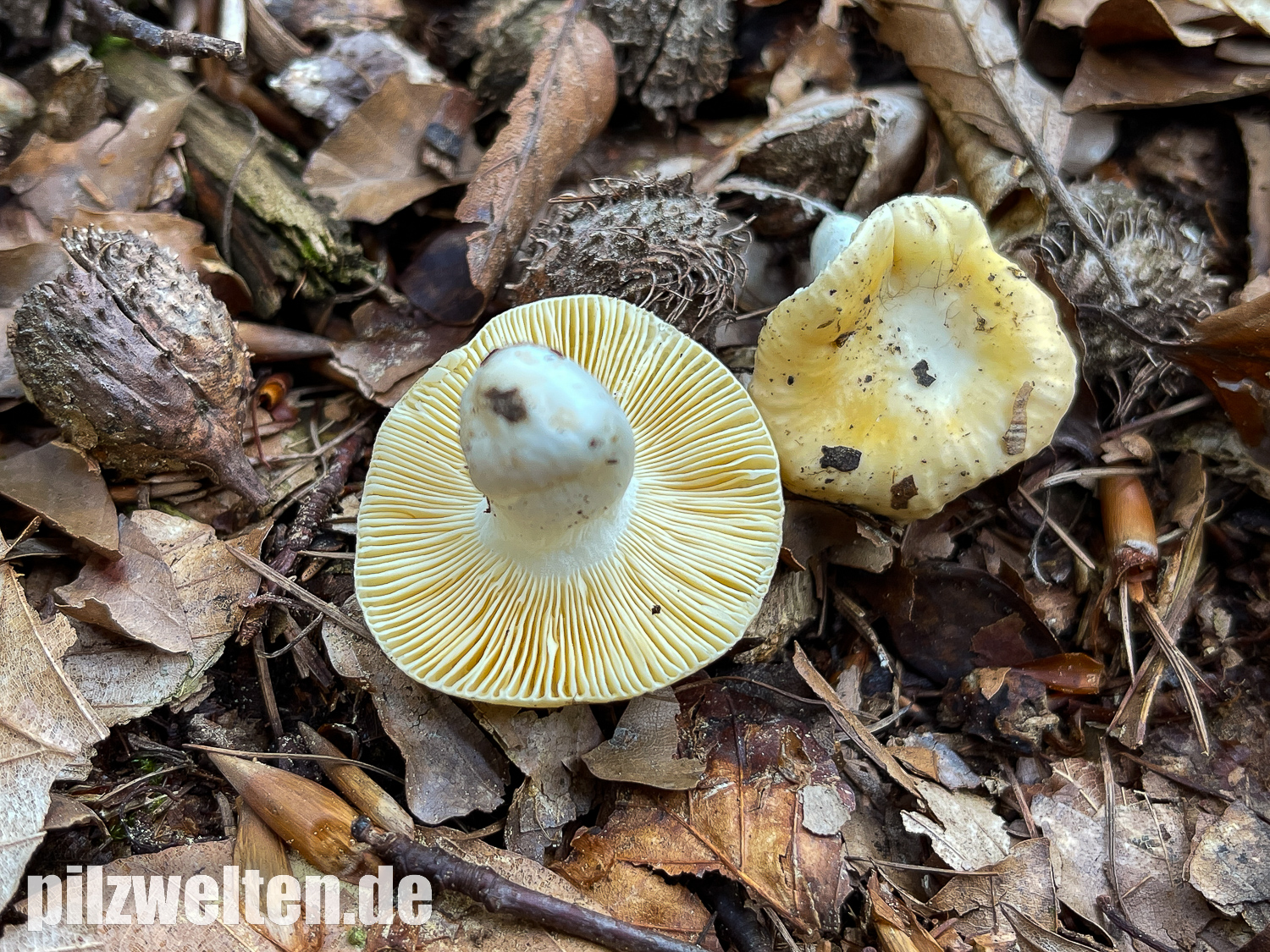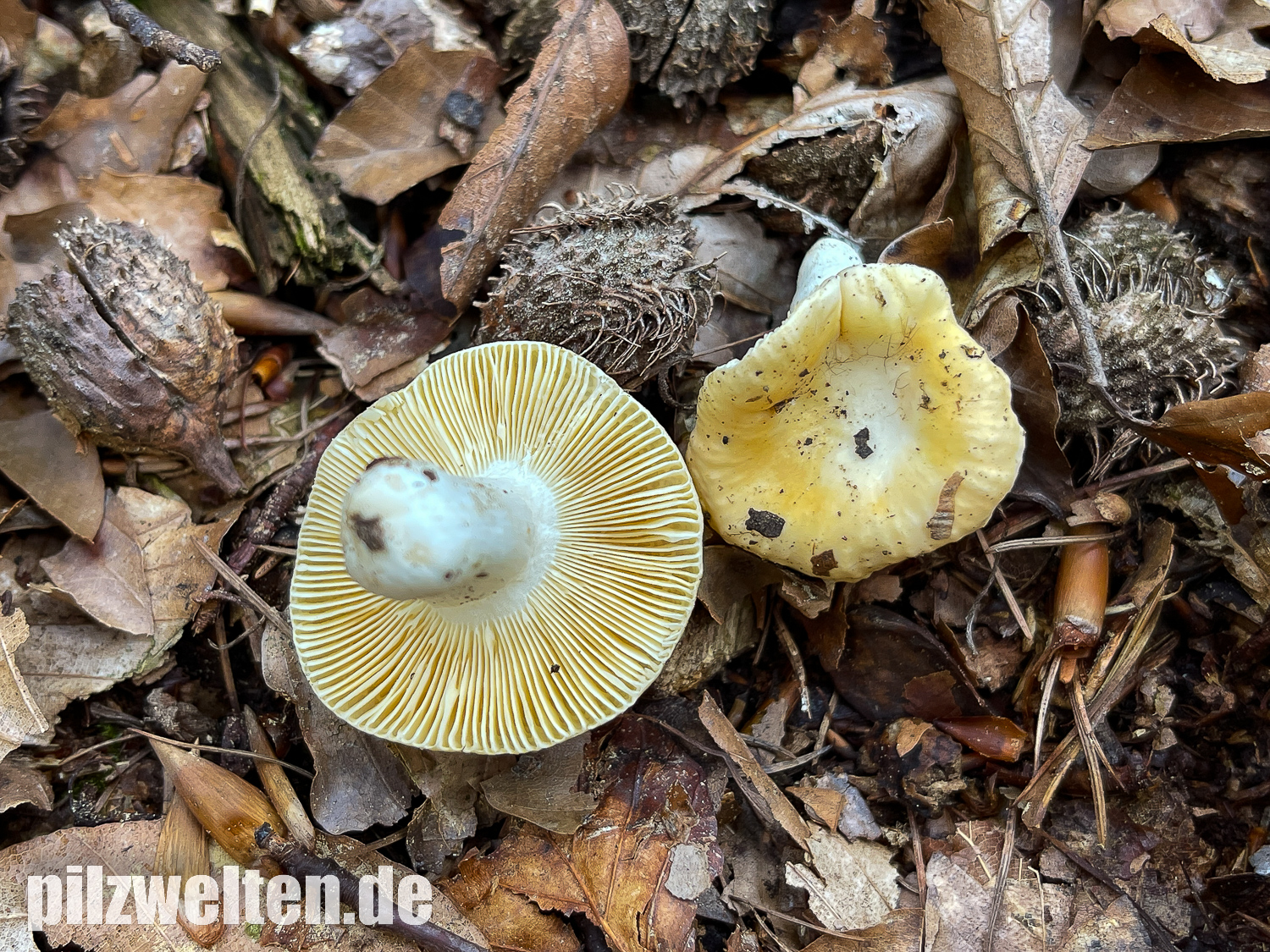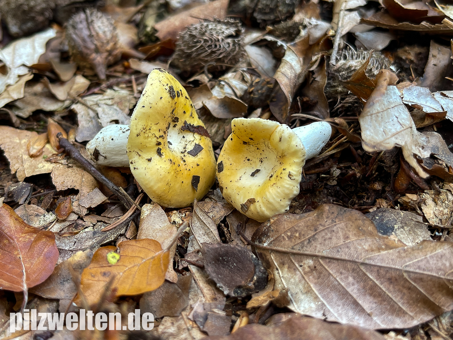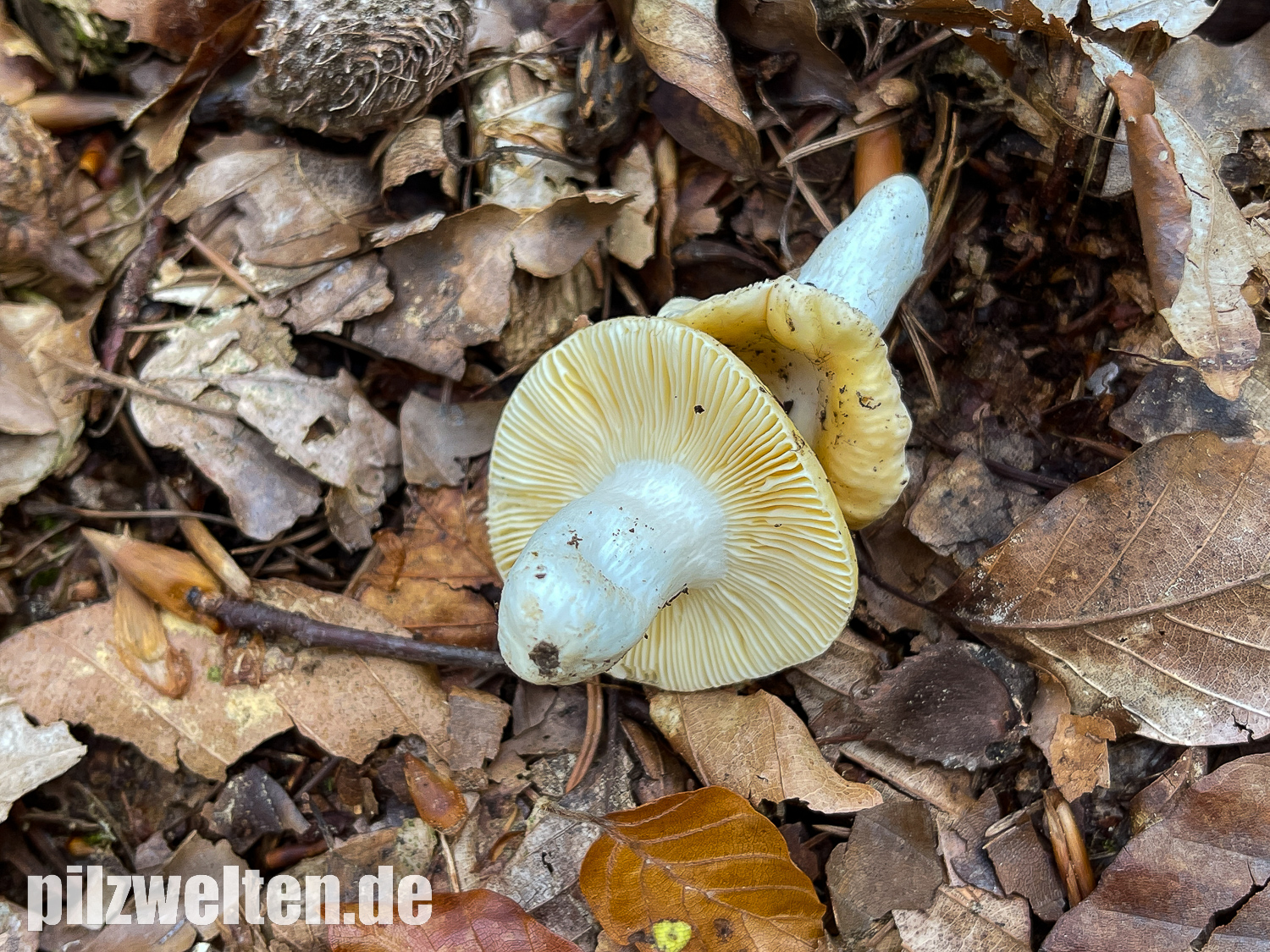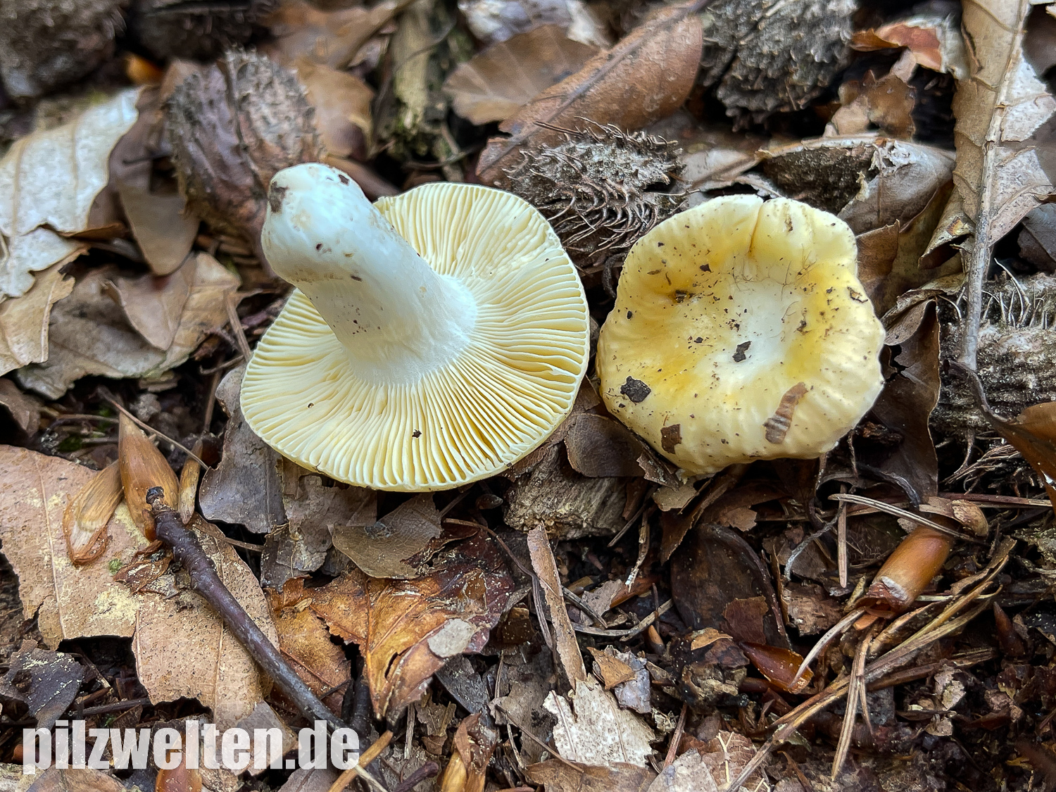 - Lamellen: Weißlich bis blassgelblich, relativ engstehend, am Grund teilweise querverbunden