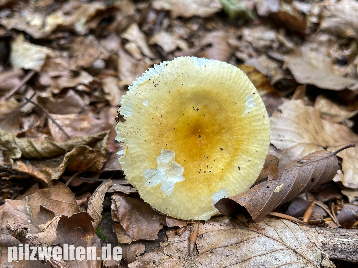 - Hutfarbe gelblich, Hutrand teilweise (vor allem beim älteren FK) gerieft