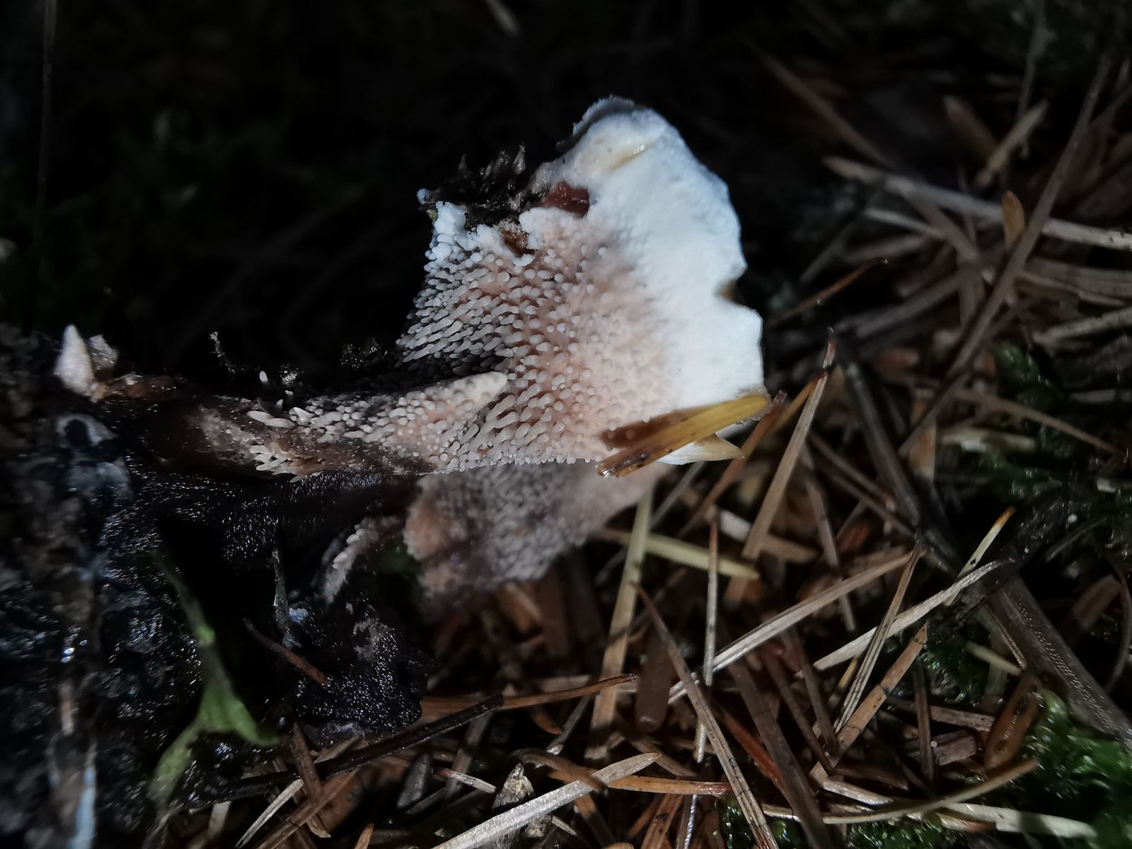 Als ich gestern im Wald (Fichten, Arven, Lärchen ca. 1800m) unterwegs war, fand ich wieder einen Stacheling. Da nur ein paar Fruchtkörper zu sehen waren, habe ich nur die kleinsten auf der Seite zur Untersuchung entnommen, den grossen liess ich stehen. Die Oberfläche hatte ein schönes rot, der Rand war weisslich. Die Stacheln waren weisslich, auf bräunlichem Grund (die fotografierten Fruchtkörper sind noch sehr jung (klein)). Die entnommenen Pilze habe ich noch hier und sind mittlerweile trocken. Leider fällt es mir schwer einen Geruch auszumachen. Während Phellodon tomentosus, den ich vor kurzem auch gefunden habe, trocken einen sehr starken Maggigeruch entwickelt hat, rieche ich hier fast gar nichts. Ich habe mal etwas recherchiert und mit so einer rötlicher Oberfläche habe ich den Orangebraunen Korkstacheling - Hydnellum auratile gefunden. Was meint ihr? Könnte das passen?