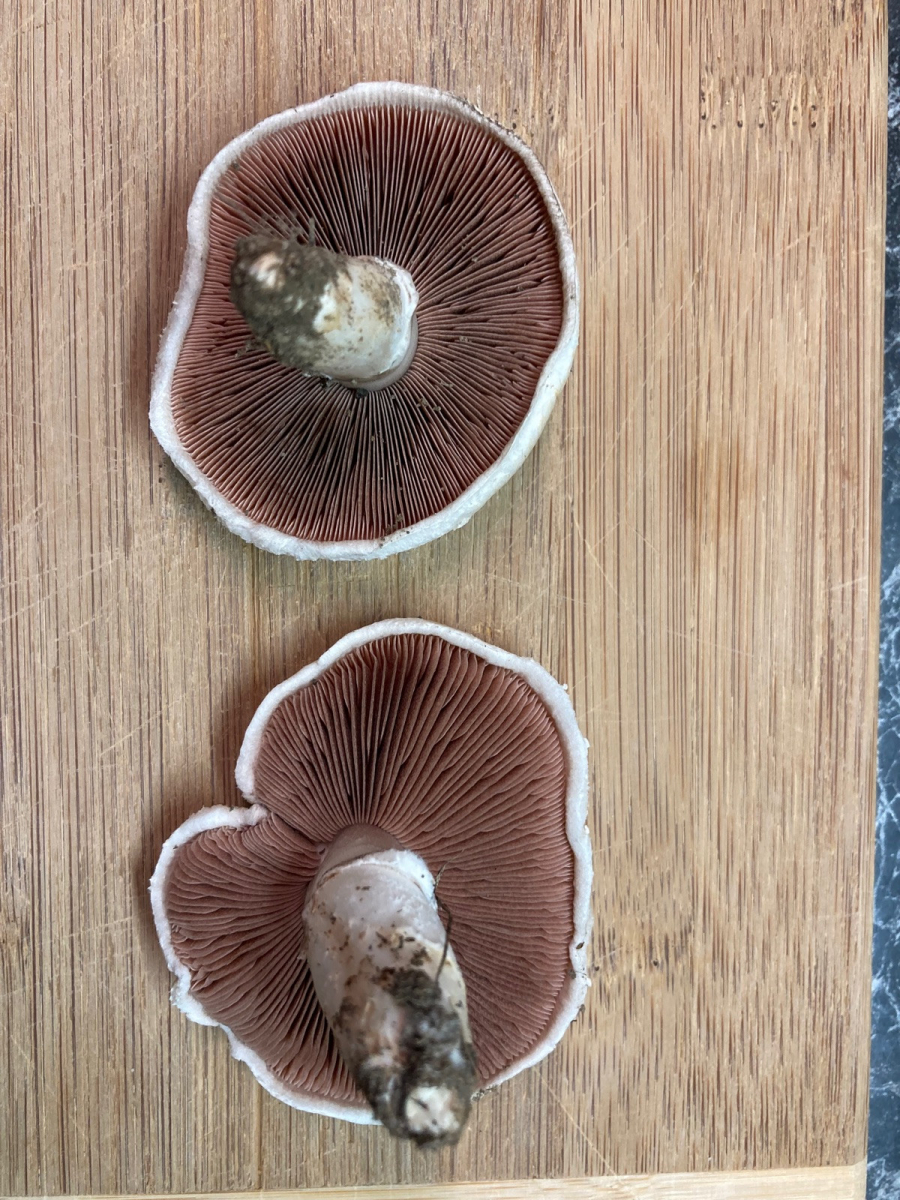Lamellen: Fleischrot bis Rotbraun, frei stehend.