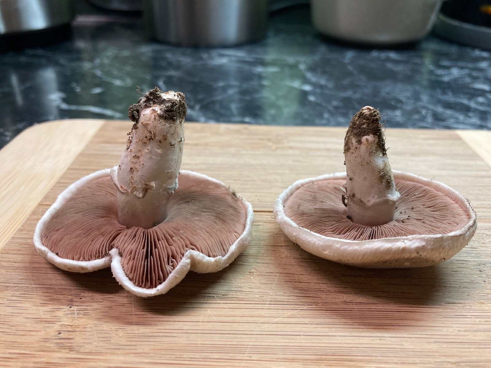 ich hab gerade beim Nachtspaziergang 2 Egerlinge gefunden. An Agaricus habe ich mich bisher noch nicht herangetraut, aber hier mal ein Versuch: