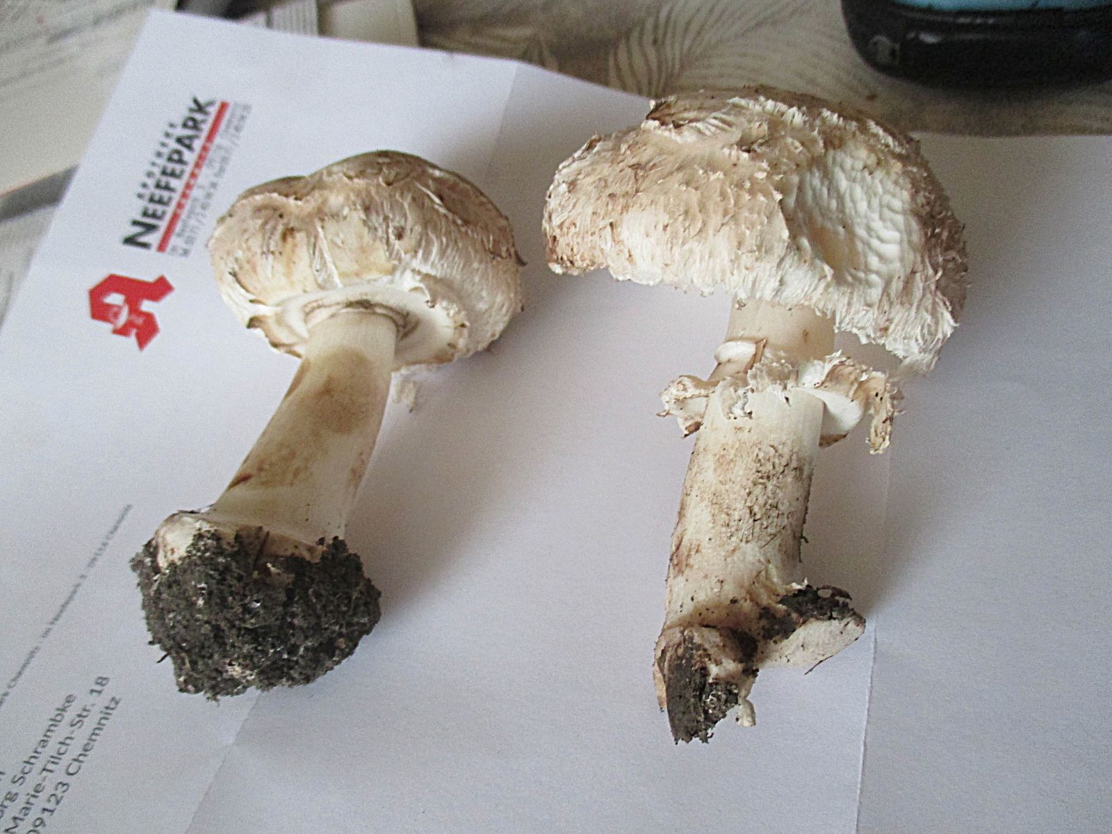 ich habe heute am Rand einer Kleingartenanlage diese Schirmlinge entdeckt, die ich als Chlorophyllum brunneum - Gerandetknolliger Safranschirmling bezeichnen würde. Was mich stört ist die sehr helle Hutfarbe und die nur schwache Rötung im Fleisch. Die kenne ich von den anderen Arten der Gattung viel stärker.