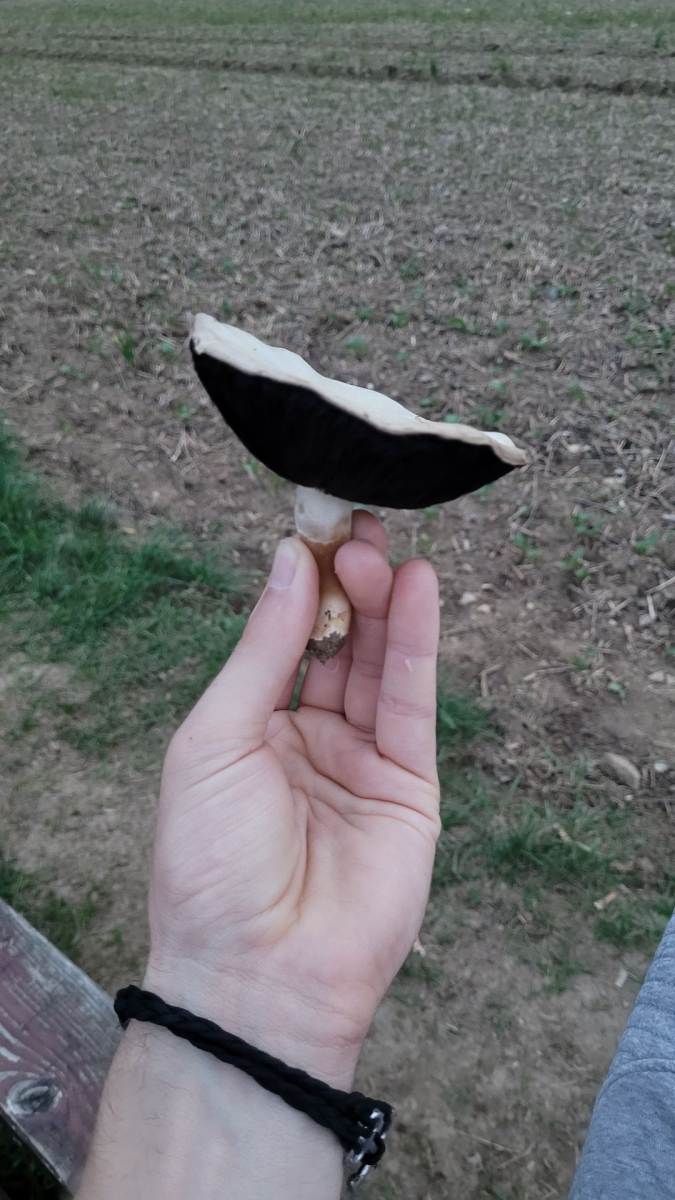 Lamellen: sehr schwarze lamellen, eng, fein, zum Stiel abgerundet.