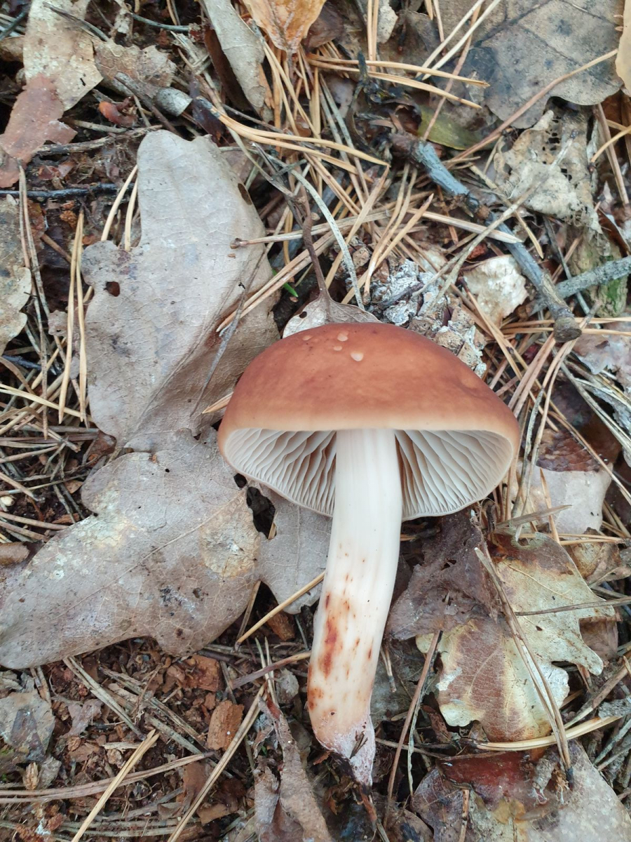 Was meiner Recherche nach nicht zum braunen oder gepanzerten Rasling passt, sind die ausgebuchtet angewachsenen Lamellen...