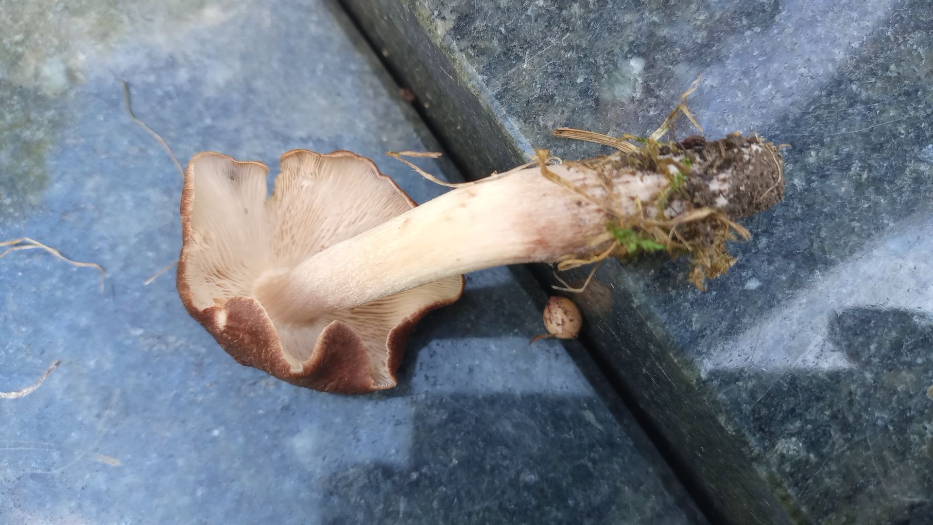 am Wochenende im Park fand ich fast nix, kein Wunder, wo doch die Regenmenge im September weiterhin gegen Null tendierte. Dann stolperte ich aber über eine Ansammlung gesellig wachsender Fruchtkörper, die ich bislang nicht fand und von denen ich keinen mitgenommen habe. Jetzt, nach einiger Recherche zu Hause, vermute ich, dass es sich um Braune, Gepanzerte oder Frostraslinge (Lyophylum aggregatum) handelt. Die Fachwelt scheint sich noch nicht einig zu sein, ob es um unterschiedliche Arten oder um morphologische Abweichungen innerhalb einer Art geht.