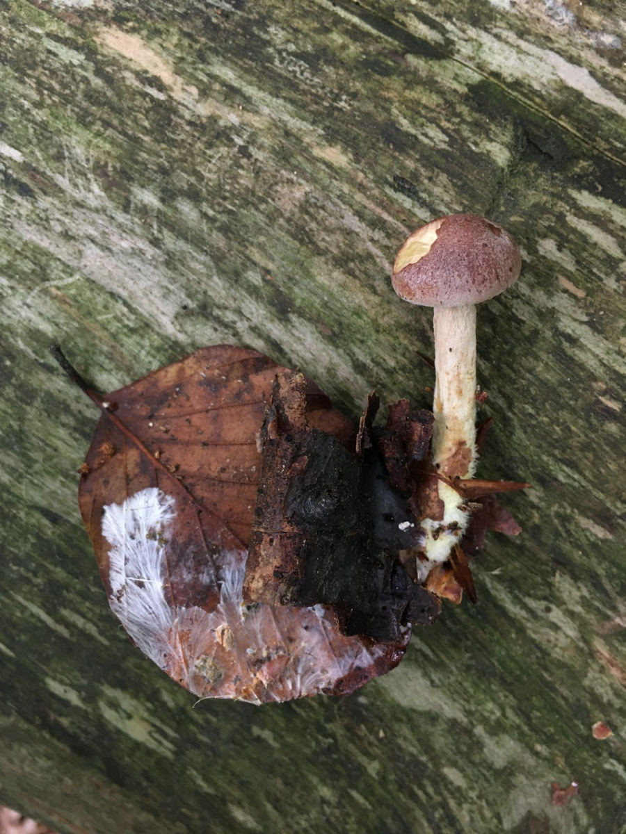 Diese hier haben mich recht genarrt. Ich fand mehrere, aber jeweils einzeln im Detritus. Die Farben kräftig, vergleichbar mit dem Pufi Hori*. Der stark bereifte fast filzige, dicke Stiel lässt mich allerdings glauben dass es einfach der brennende Rübling (Gymnopus peronatus) ist. Leider hatte ich die Idee im Wald noch nicht sonst hätte ich mal probiert.
