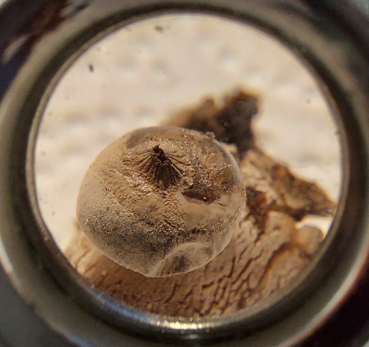 Ich habe hierzu keine richtige Idee. Das Peristom ist deutlich gefurcht. Die Lappen sind rissig. Die Sporenkugel ist kurz gestielt. Größe ist ca. 3 cm im Gesamt-Durchmesser.