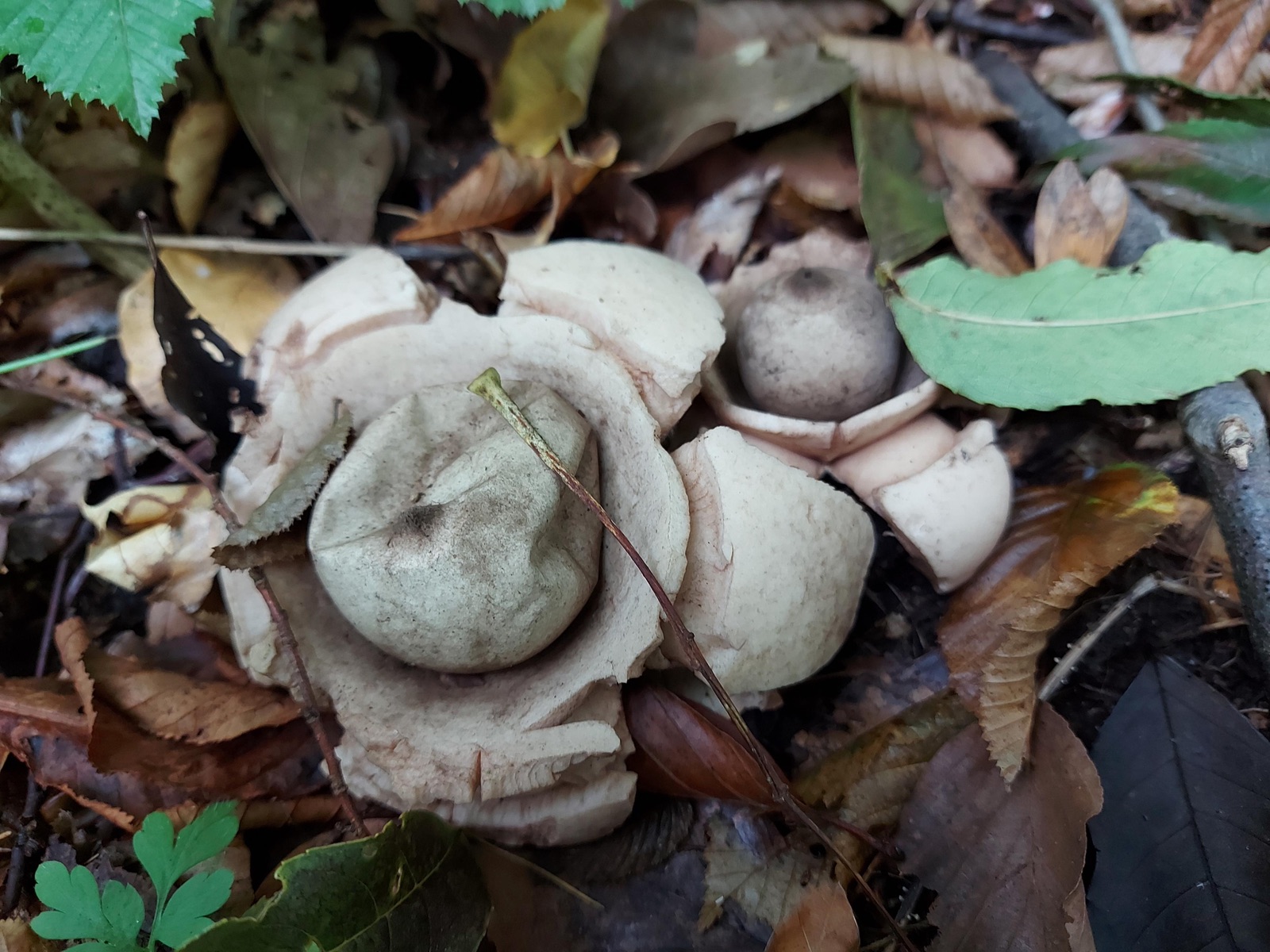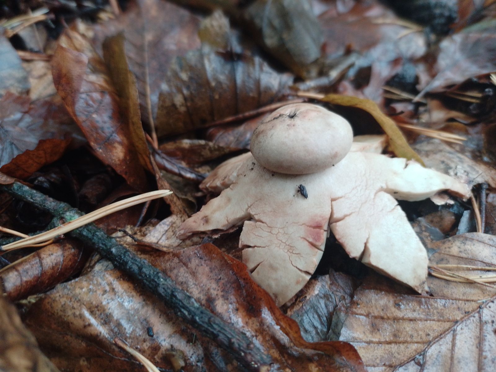 Das ist wieder nun ganz was anderes. Das sind junge Fruchtkörper von Geastrum triplex, dem Halskrausen-Erdstern.