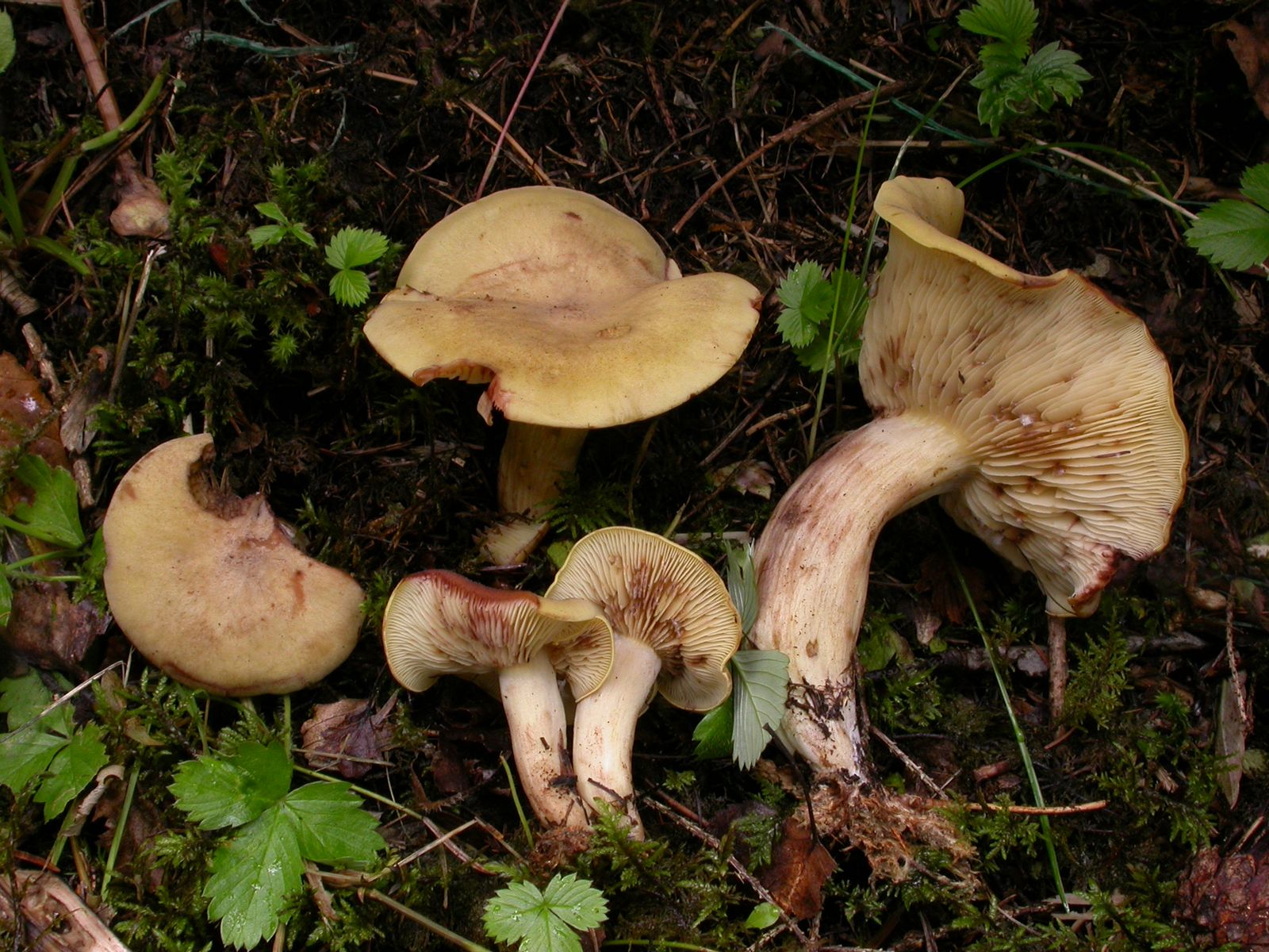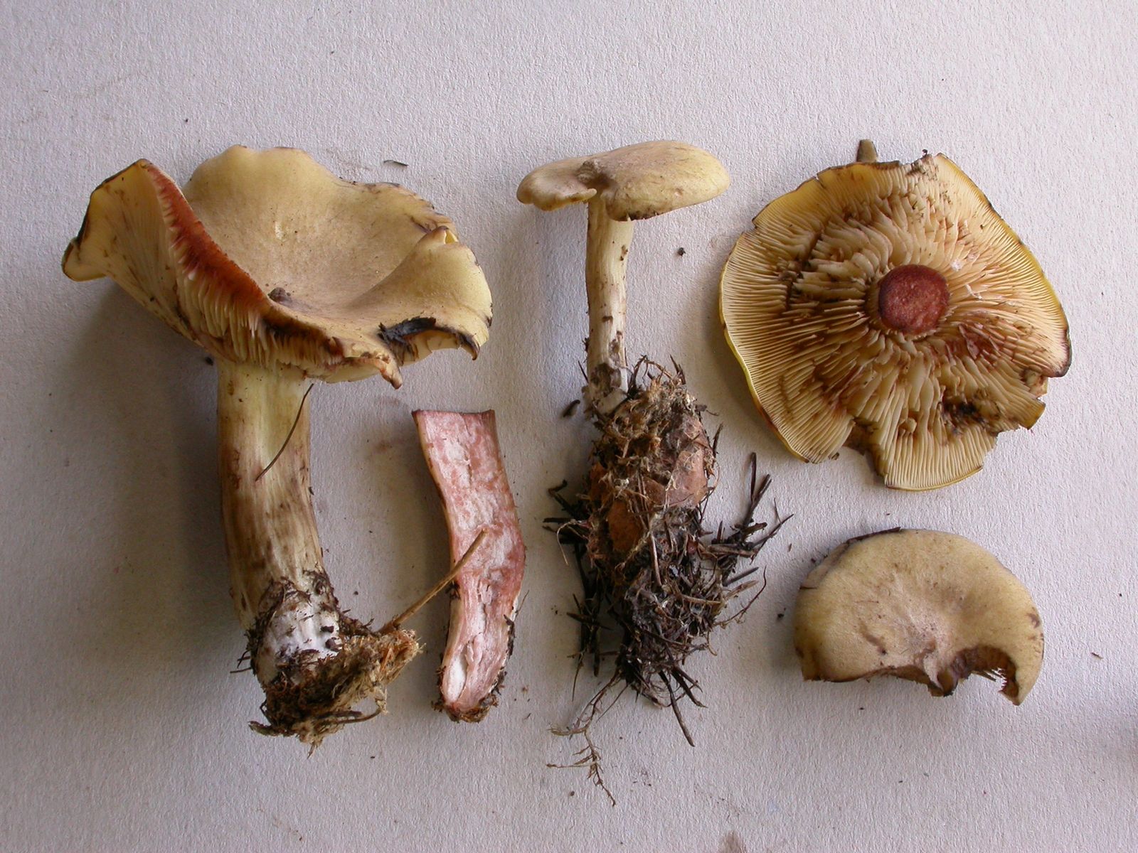 Ein ockergelber Pilz mit Ritterlingshabitus. Das Röten geht sehr schnell und ist natürlich auch sehr auffällig.