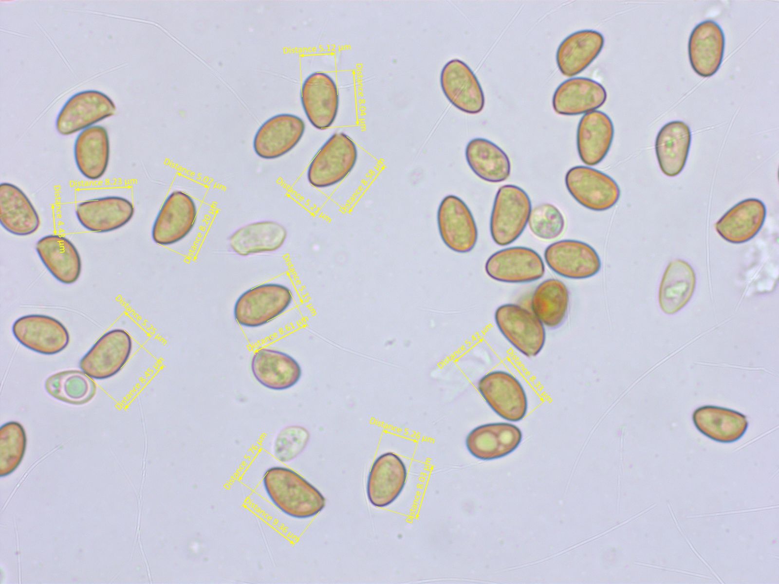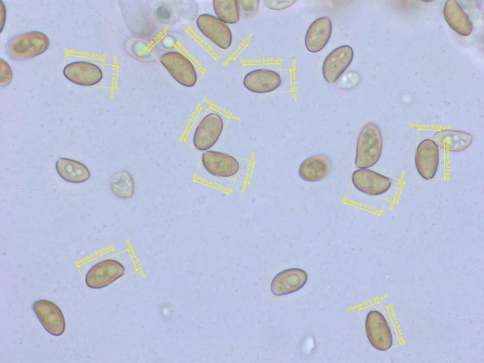 Sporen: 8.7-9.4-10.4 x 5.0-5.3-5.6 µm, Q = 1.63-1.79-2.05 (n=20)
