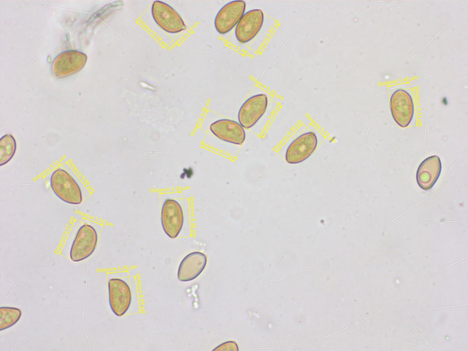 Sporen mehrheitlich elliptisch, 7.8-8.4-9.4 x 4.4-5.1-5.8 µm, Q = 1.53-1.65-1.86 (n=20)