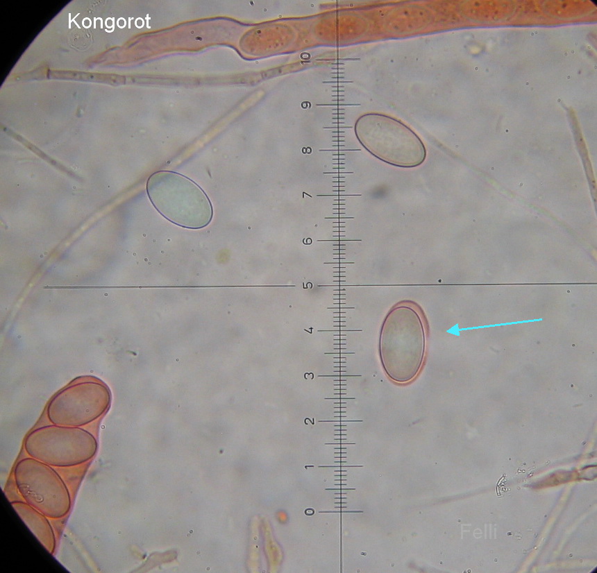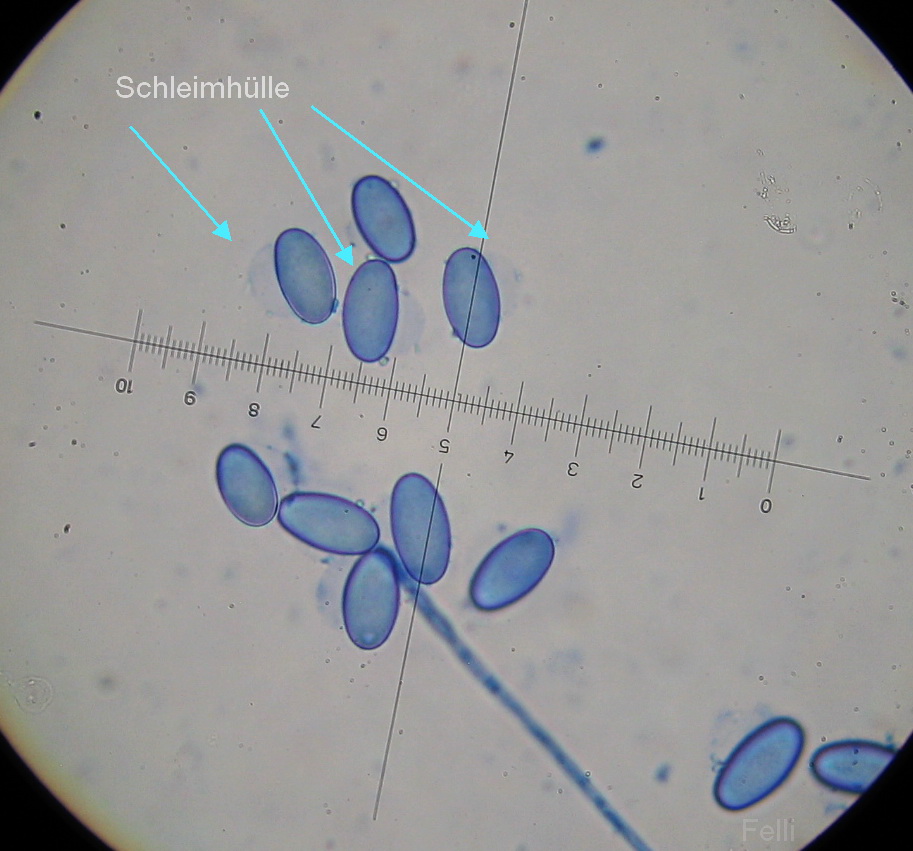 Sporen: (15)16-18(20) x (7)8-9(10)µ, glatt ohne Tropfen, mit seitlicher Schleimhülle, Q=1,6-1,9