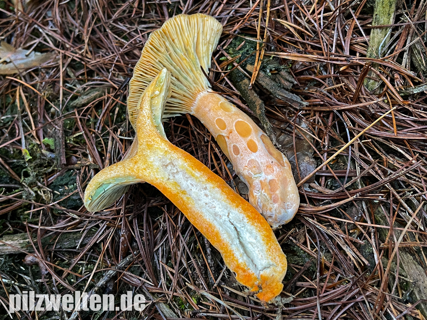Eingrenzung: Reizker sollte anhand der Bilder klar sein. Einer der Edelreizker mit den Grübchen am Stiel und den Farben auch. Den "Standard-Edelreizker" habe ich auf Grund der grünen Farben ausgeschlossen.