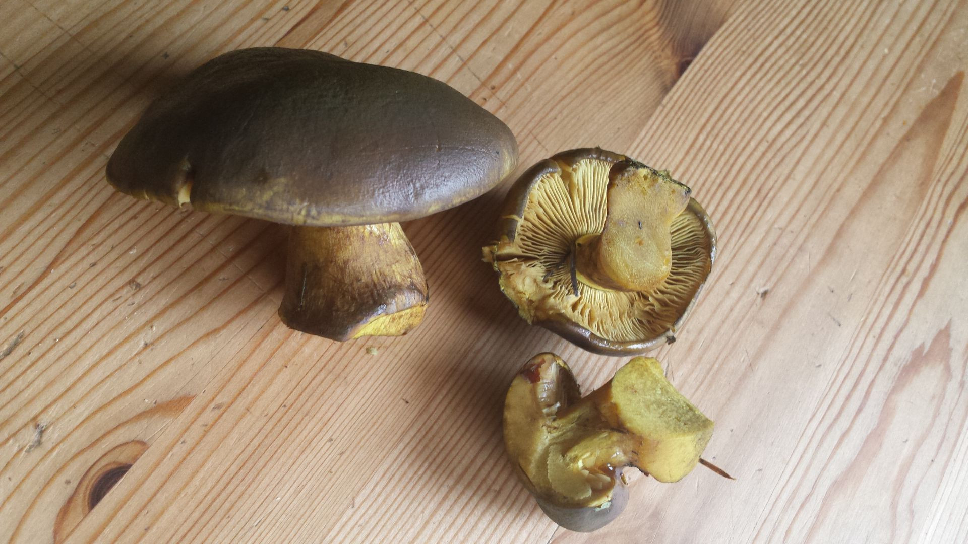 Braune Kappe und gelbe Lamellen