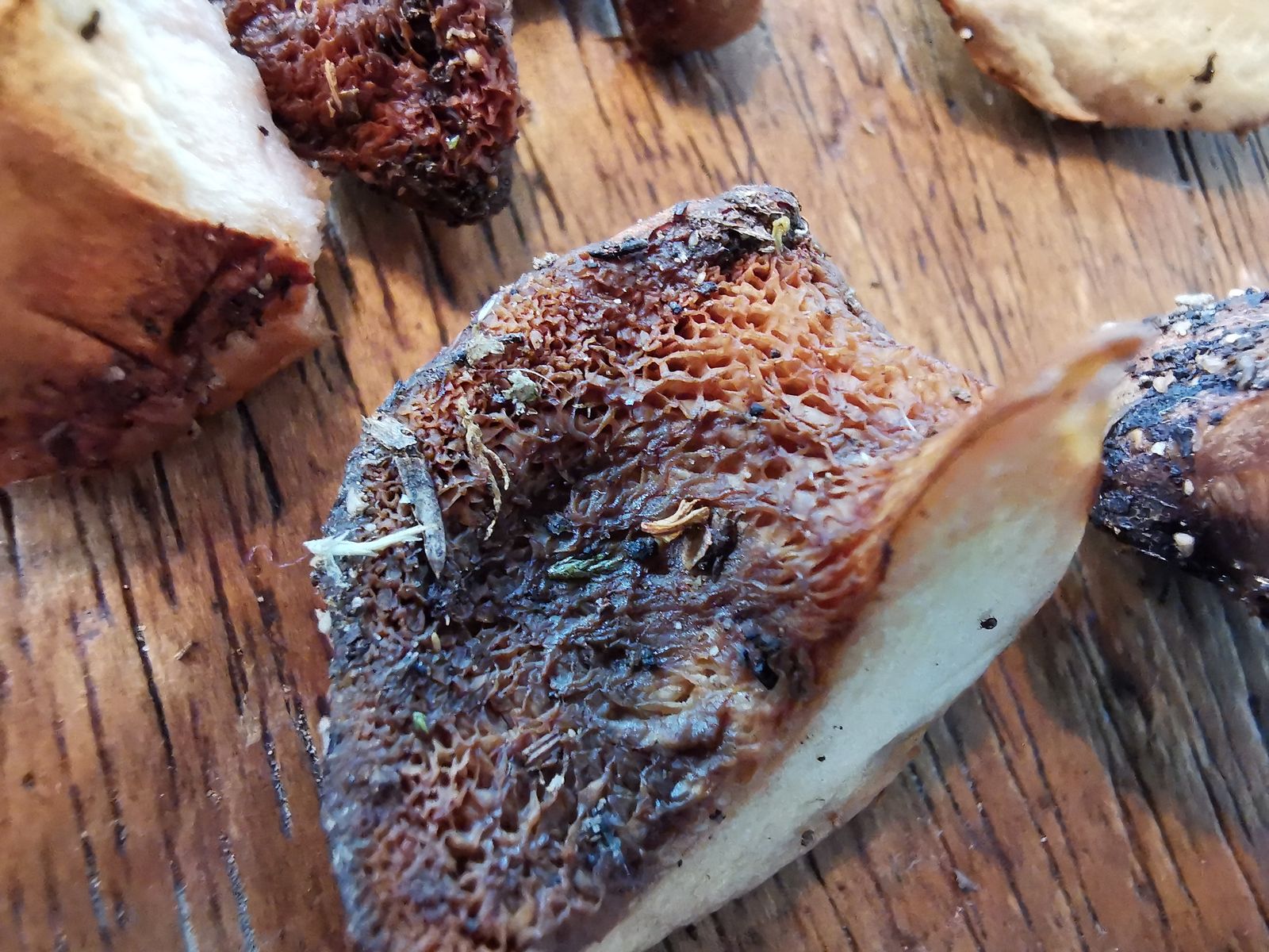 Er kommt hier relativ häufig vor. Dachte es wäre der Kuhröhrling, jedoch wird das Fleisch nicht rosa, wenn man diesen Pilz kocht/brät.