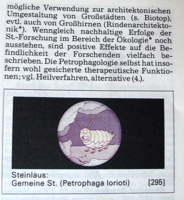 Ein Hinweis am Rande. Pschyrembel übernahm die Beschreibung und den therapeutischen Einsatz der Steinlaus in seinem Standartwerk vor einigen Jahren. Irgendwann haben sie die Steinlaus wieder