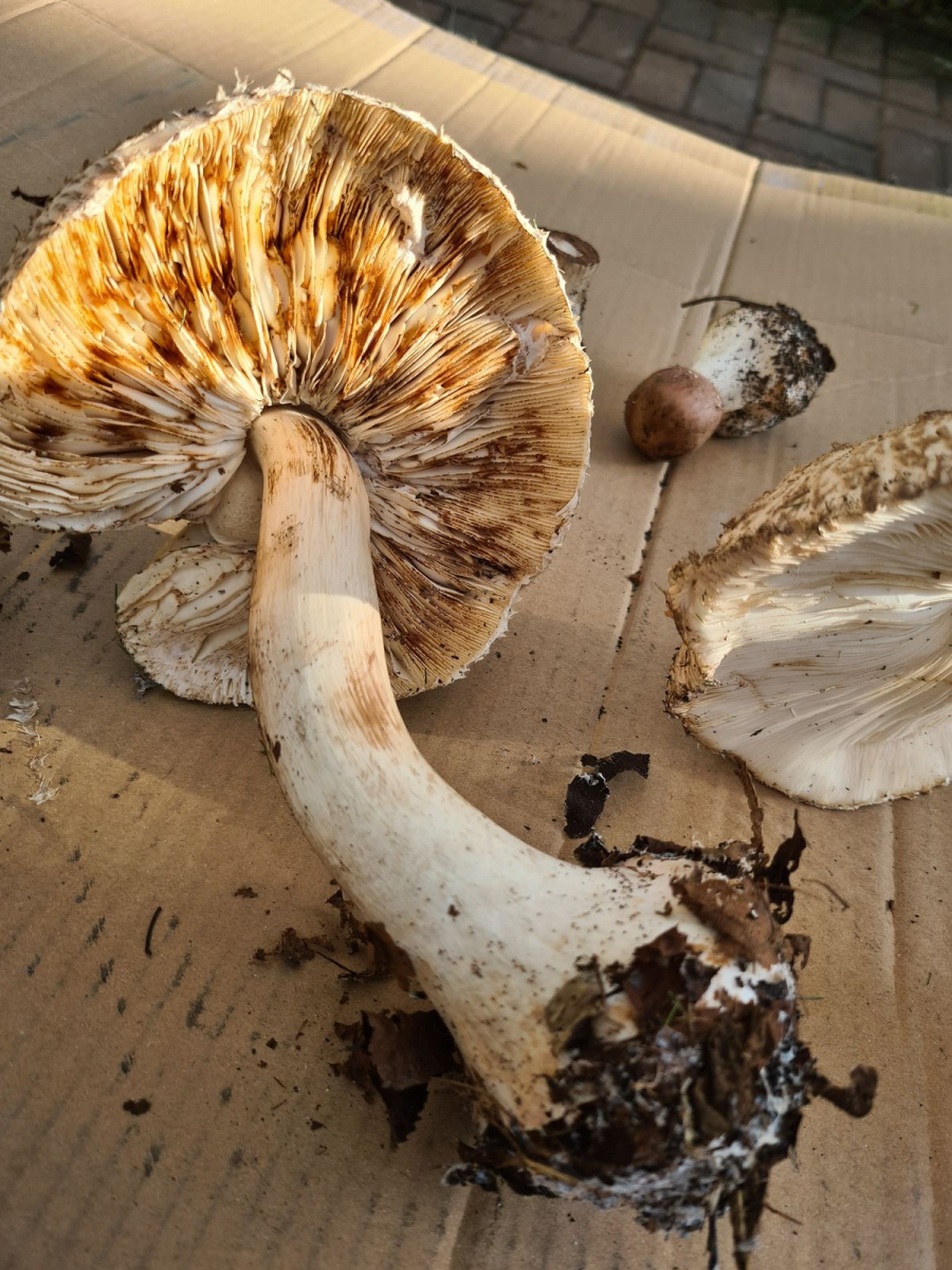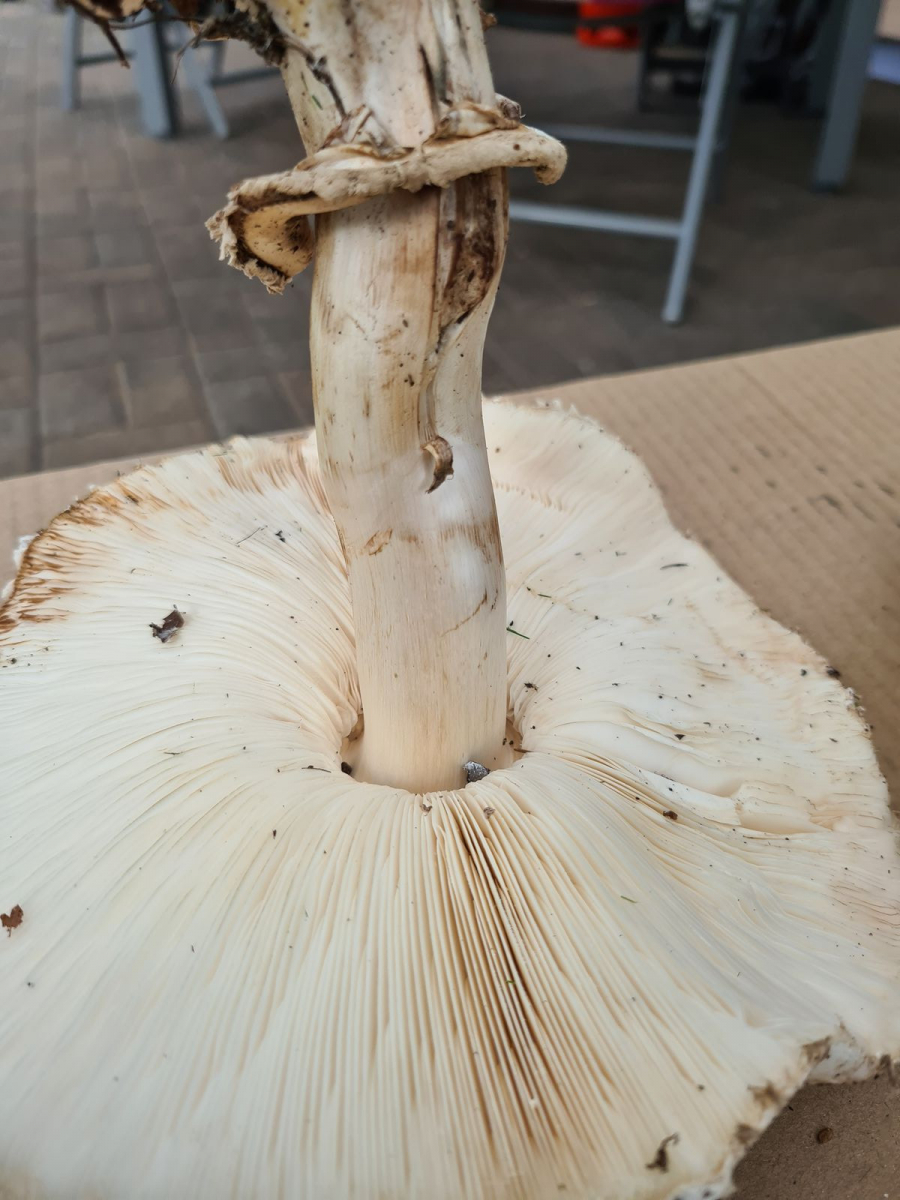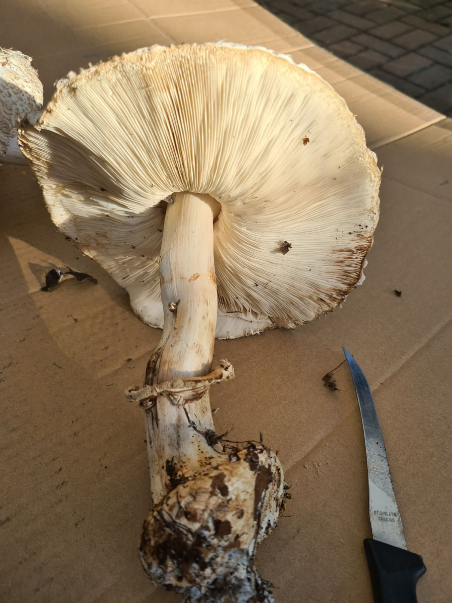 Schließe mich Uwe an. Chlorophyllum brunneum - Gerandetknolliger Safranschirmling. Führt bei einigen Menschen zu ordentlichen gastrointestinalen Problemen.