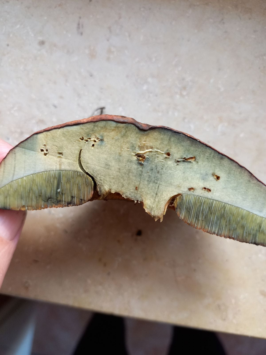 Was ist das für ein Röhrling? Meine glattstieligen Hexen sahen nicht so aus - die Röhren waren bei denen gelb und im Alter olivfarben, ebenso war der Stiel nicht so.