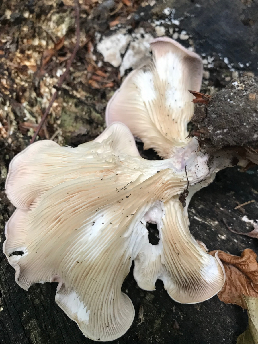 Auf den zweiten Blick laufen die Lamellen sehr weit am Stiel herunter, sie sind recht dünnfleischig und ausgesprochen zäh. Auch der typische Austerngeruch fehlt, sie riechen kaum.