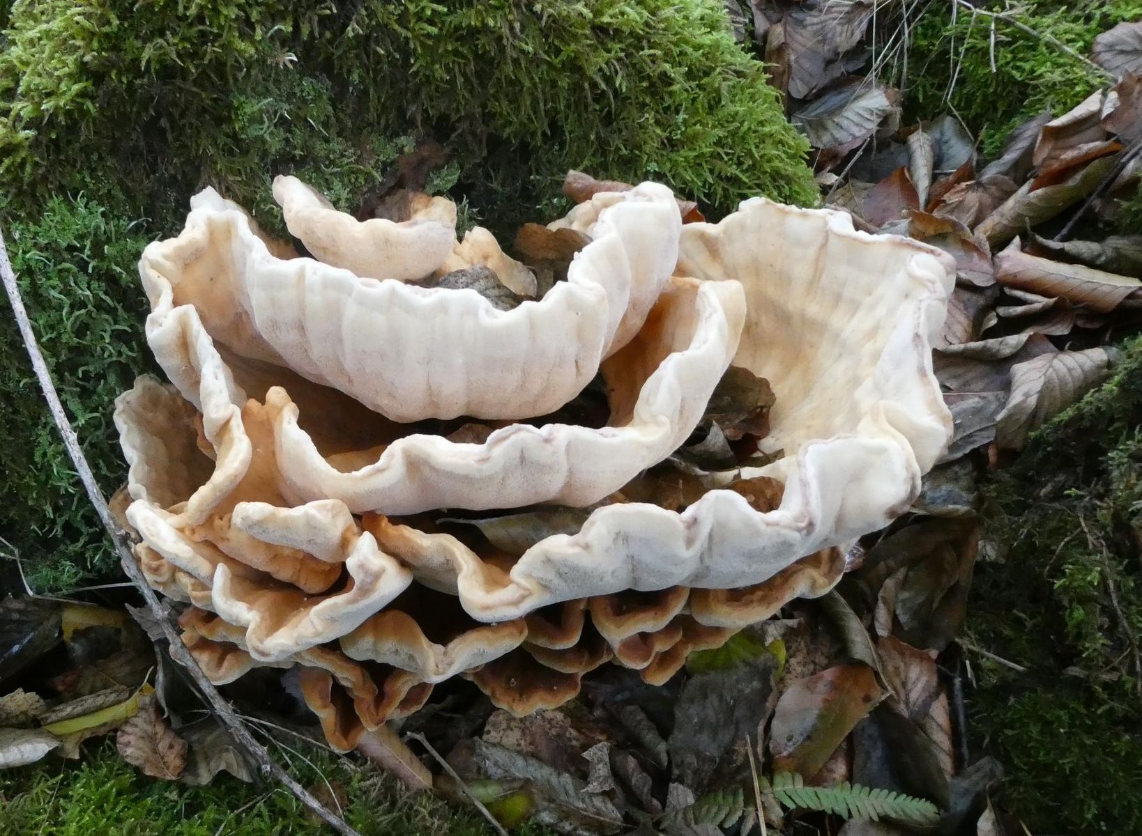 Und an einem liegenden Buchenstamm auch Austernseitlinge Pleurotus ostreatus :
